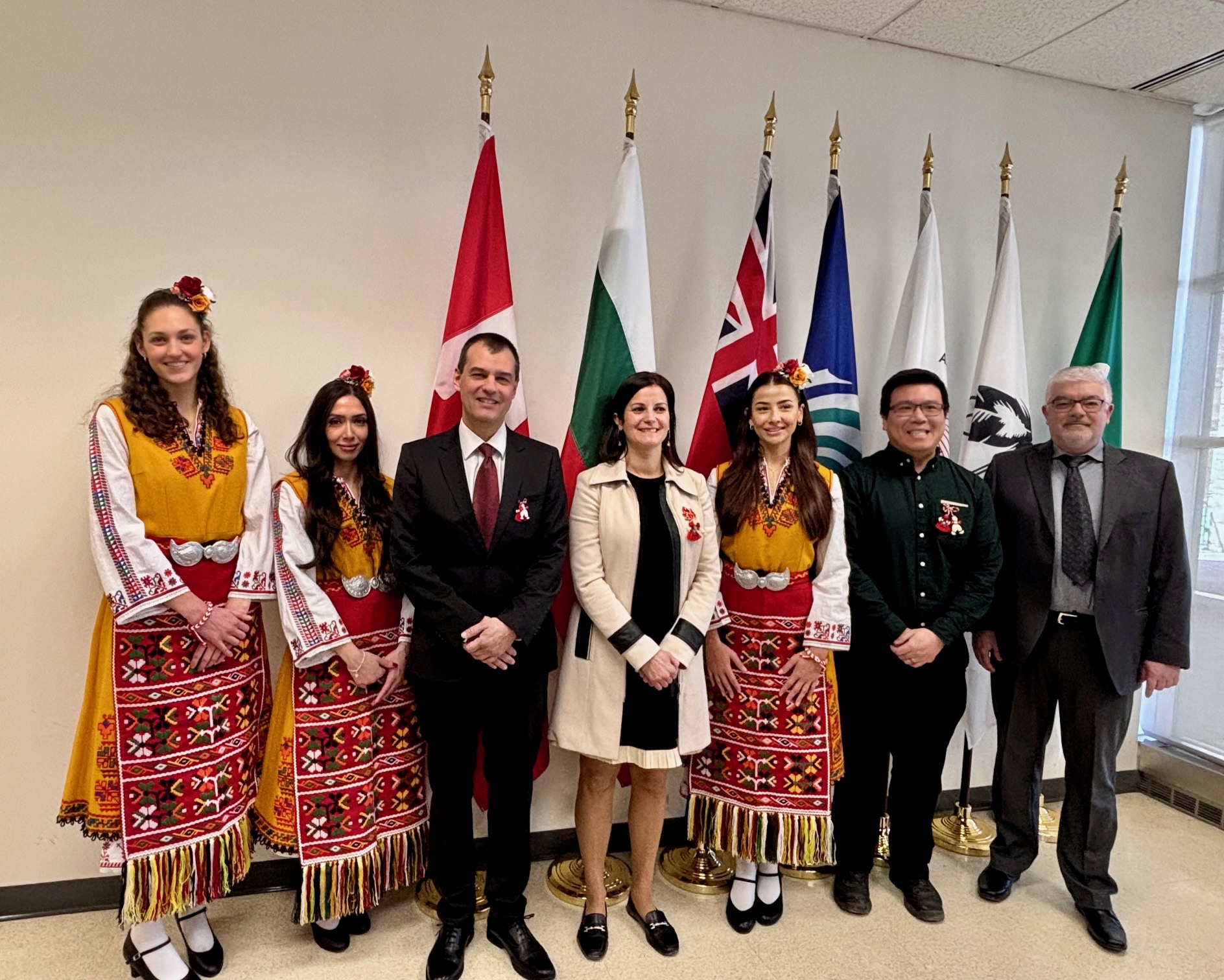 От името на Република България приветствие към гостите отправи посланик Пламен Георгиев. Той поздрави сънародниците ни с националния празник, като изтъкна историческото значение на датата 3 март и саможертвата на хилядите знайни и незнайни наши сънародници отдали живота си за свободата и независимостта на Родината. Посланикът посочи още, че този празник е повод за обединение на всички българи по света и призова да помним своята история и идентичност. Той подчерта приноса на българската общност в Канада за обогатяване на традициите и културата на страната, както и за развитието на връзките между двете страни. Посланик Георгиев постави акцент върху възходящото развитие на двустранните отношения между България и Канада, които през настоящата година отбелязват своята 60-та годишнина, и подчерта необходимостта от по-нататъшно укрепване на партньорството между нашите две страни, вкл. и в контекста на нарастващите предизвикателства в международен план.