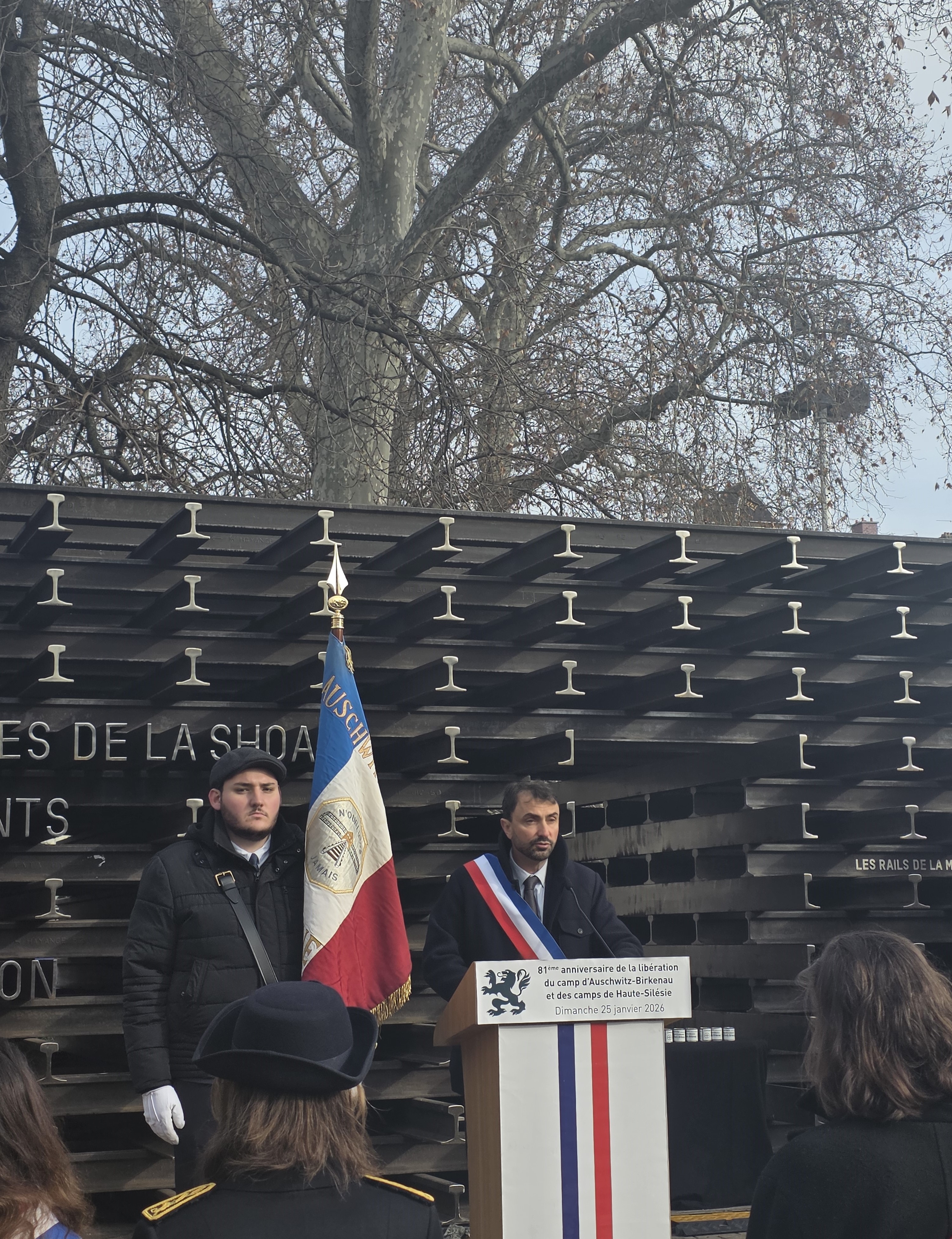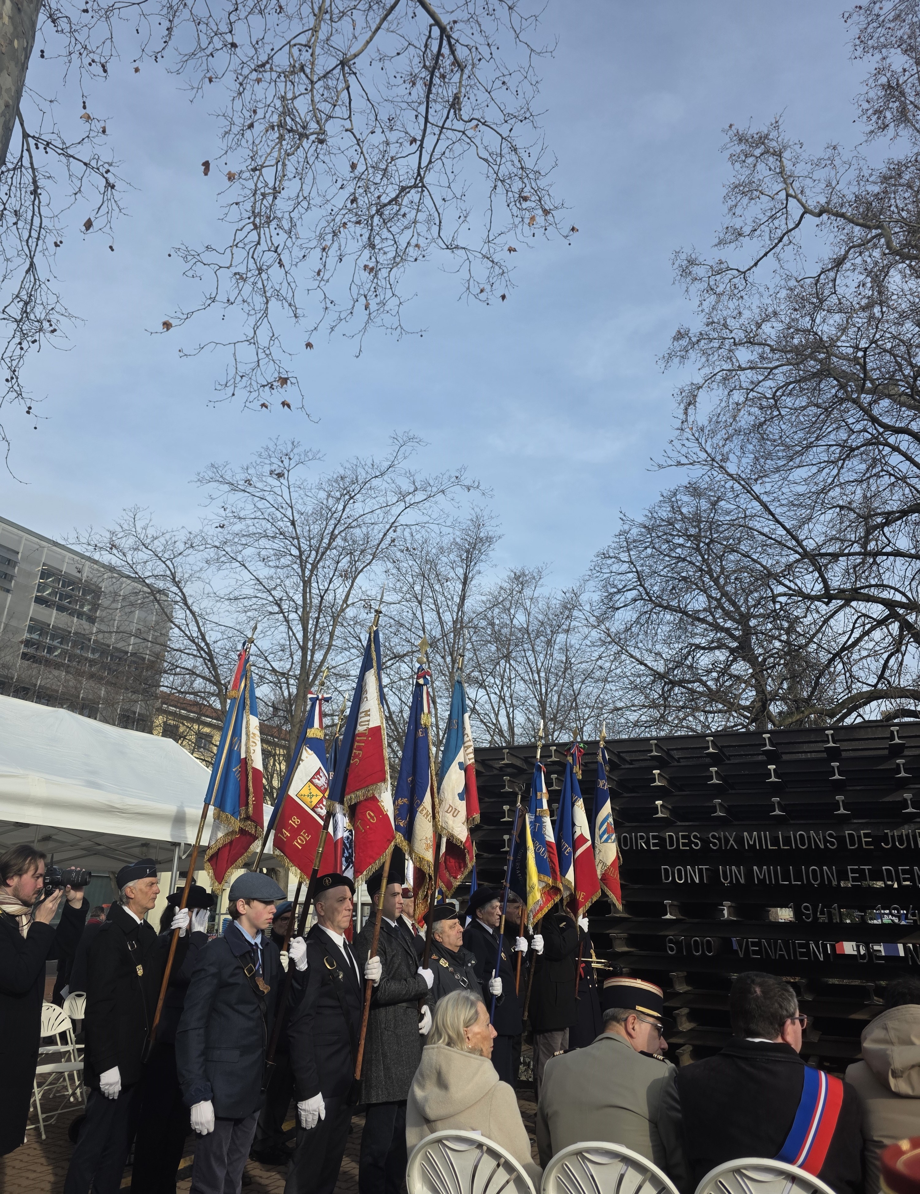 Възпоменанието се състоя на площад „Карно“ пред мемориала „Релси на паметта“. Паметникът е изграден от 1173 метра железопътни релси, символизиращи разстоянието от точно 1173 км между местната гара Lyon Perrache и лагера „Аушвиц-Биркенау“.