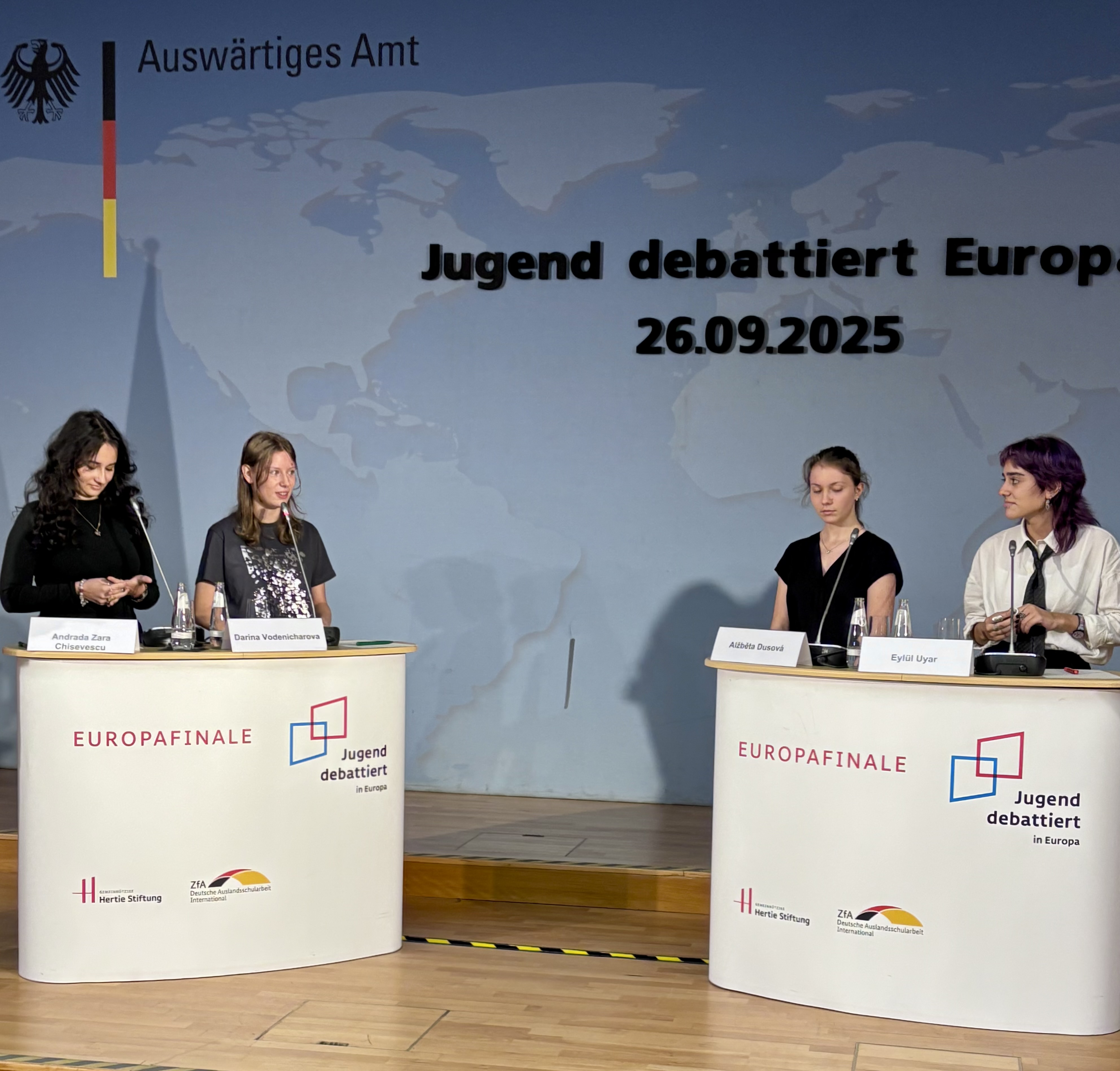 Дарина Воденичарова, ученичка от Немската езикова гимназия „Бертолт Брехт“ в Пазарджик, достойно представи България като финалист в едно от най-престижните състезания по дебатиране на немски език в Европа. Финалът на международния конкурс се състоя в Европейската зала на Федералното външно министерство в Берлин и събра 34-те най-добри млади дебатьори от над 35 държави.