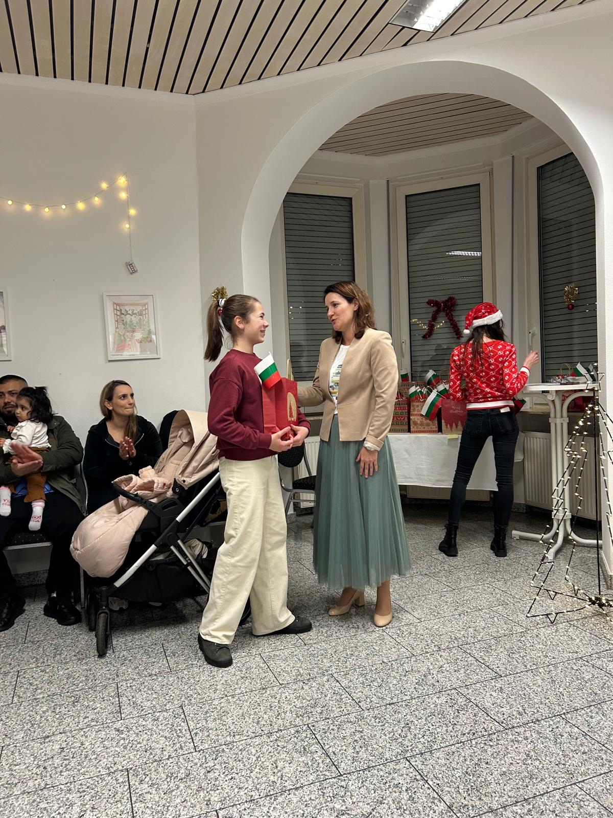 С особена радост бе отличена рисунката на Никол Хубчева, 6 г., от училище „Васил Левски“ – Франкфурт, която заслужено спечели първо място. Нейното произведение бе отпечатано и ще бъде изпратено като празнично послание до официалните германски институции и чуждестранни партньори в консулския окръг.