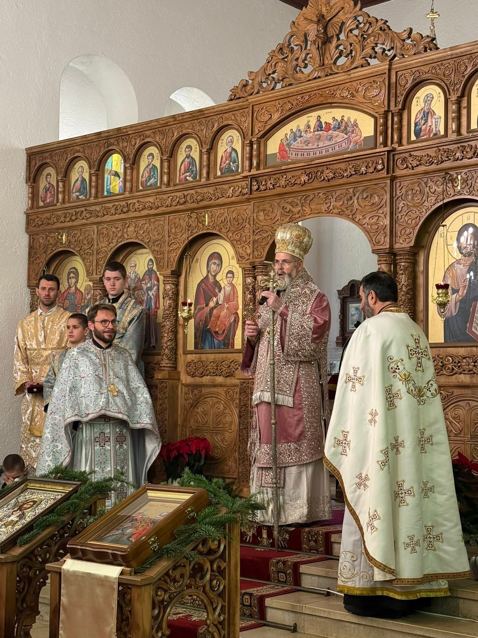 Празничната света литургия бе отслужена от Негово Високопреосвещенство митрополит Антоний, който оправи към общността пожелания за здраве, благополучие, вяра и надежда. Митрополит Антоний донесе в храма частица от мощите на Свети Патриарх Евтимий Търновски. В рамките на богослужението отец Райко Синев бе удостоен с офикията протойерей – признание за неговата всеотдайна служба и принос към българската църковна община. В празничната литургия участва и отец Юлиян Ангелов от Българската православна църковна община в Берлин.