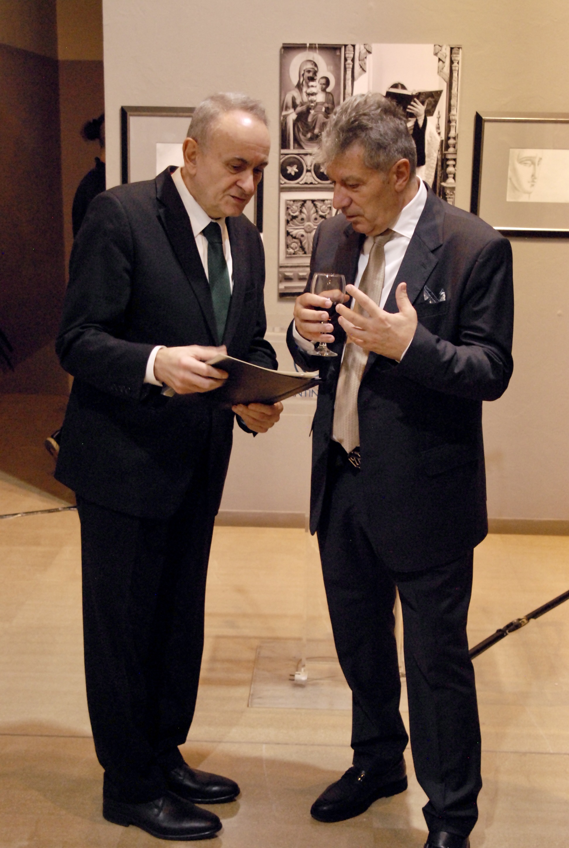 Откриването се превърна в значимо културно събитие, в духа на утвърденото сътрудничество между България и Гърция. Посланикът на България в Атина Валентин Порязов подчерта дълбоката духовна връзка между двата народа, плод на над хилядолетна обща християнска традиция. В приветствието си той отбеляза значимата роля на българското монашество на Атон и духовния престиж на манастира „Св. Вмчк. Георги Зограф“, който и днес остава жив символ на българското присъствие на Света гора. Посланик Порязов обърна внимание също на днешното партньорство между Гърция и България, изградено върху активен обмен във всички области, взаимно доверие и споделени европейски ценности. Съобщи също, че изложбата е под патронажа на президента на Република България Румен Радев, от чието има връчи поздравителни адреси на генералния директор на музея г-жа Калиопи-Федра Калафати и на двамата автори.