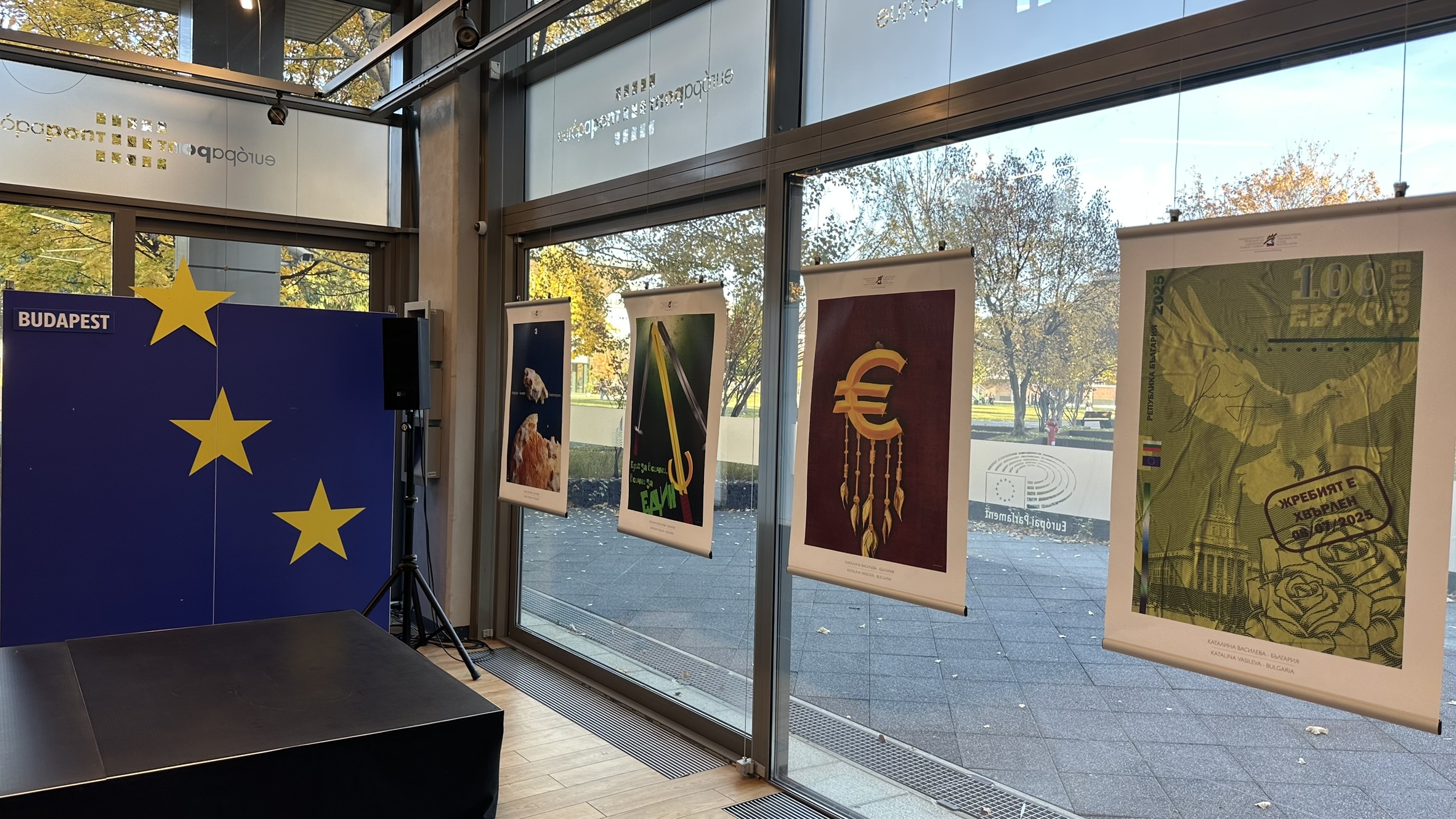 На 29 октомври 2025 г. в Представителството на Европейската комисия в Унгария Európa Pont Посолството на Република България в Унгария проведе събитие, посветено на предстоящото на 1 януари 2026 г. приемане на еврото като официална парична единица в Република България. Изложбата от тематични плакати „България и еврото“, предоставена от Международното триенале на сценичния плакат – София, бе представена пред посланици, акредитирани в Унгария, официални представители на унгарските институции, както и общественици, представители на академичните и културните среди и медиите. Събитието бе открито от ръководителя на Представителството на Европейската комисия в Унгария, г-н Габор Зупко, както и от извънредния и пълномощен посланик на Република България в Унгария, г-н Христо Полендаков. Поздравителен адрес и информация за изложбата бе предоставена и от г-жа Каталина Василева, автор на няколко от плакатите, старши експерт в Държавния културен институт към Министъра на външните работи на Република България.