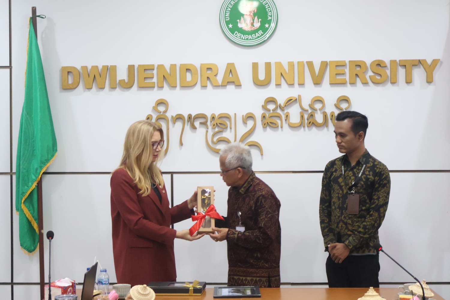 Гост-лекция на Нейно Превъзходителство г-жа Таня Димитрова, извънреден и пълномощен посланик на Република България в Република Индонезия, се проведе в университета „Двиджендра“ в Денпасар на 13 февруари 2026 г. Посещението започна със среща между посланик Димитрова и ректора на университета г-н Геде Седана, по време на която бяха дискутирани възможности за бъдещо сътрудничество и партньорства за насърчаване на младежкия обмен и международния диалог.