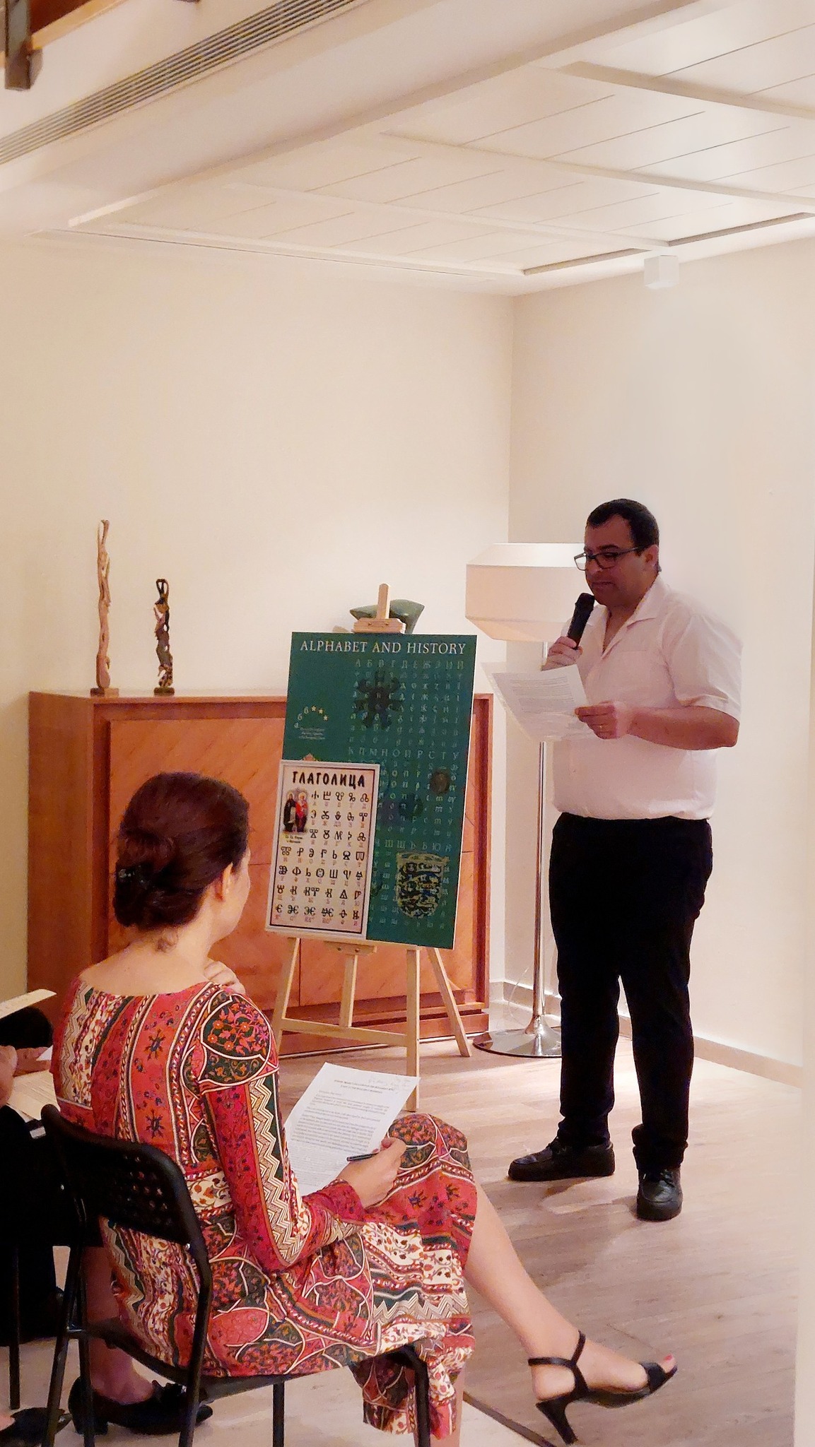 Силен интерес предизвика включеното в програмата кратко представяне за историята на българския език и азбука, което бе осъществено със съдействието на Държавния културен институт към министъра на външните работи.