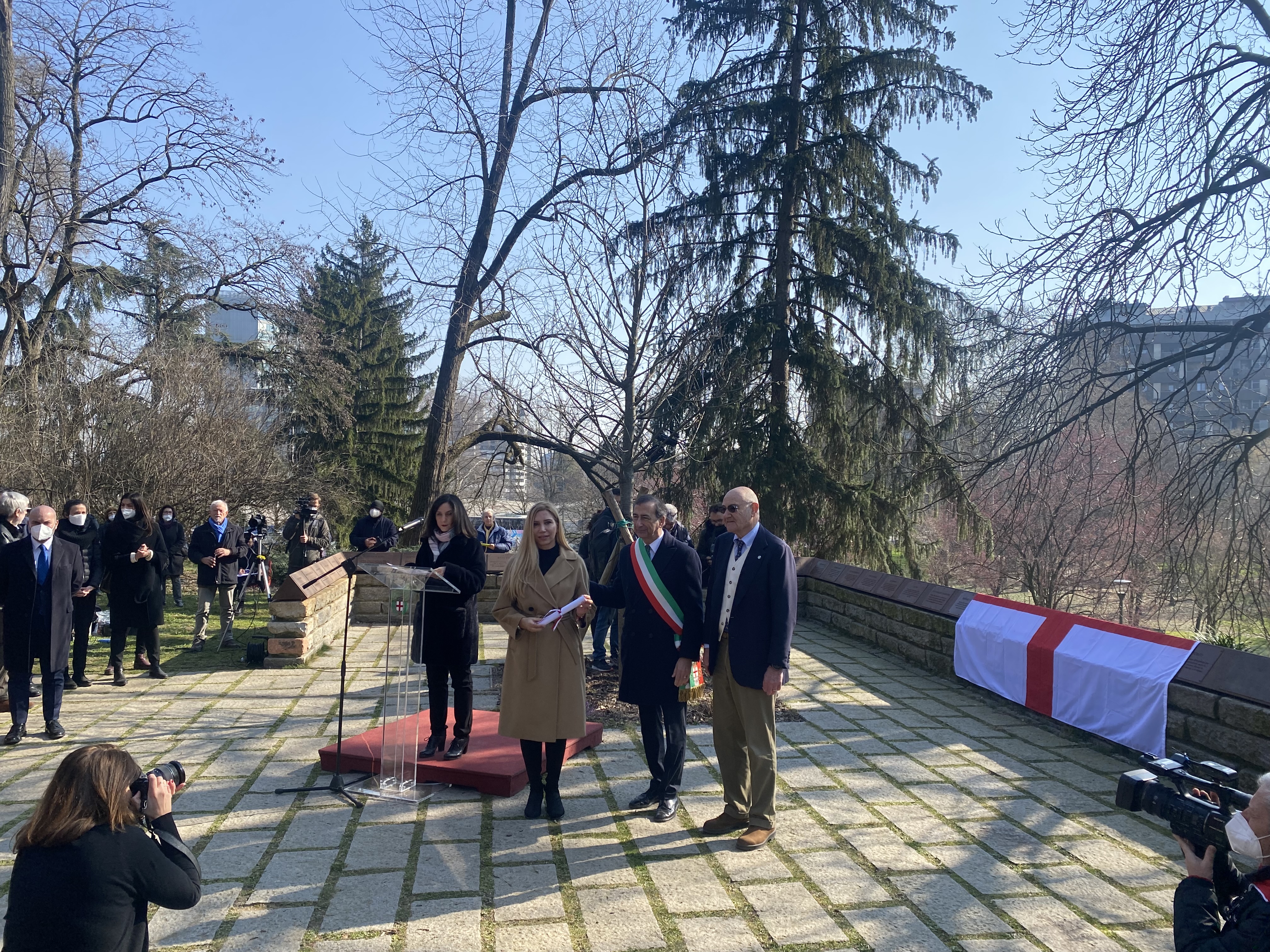 Церемония по връчване на пергамента на новоизбрания праведник Патриарх Кирил във виртуалната градина на праведниците от целия свят в Милано