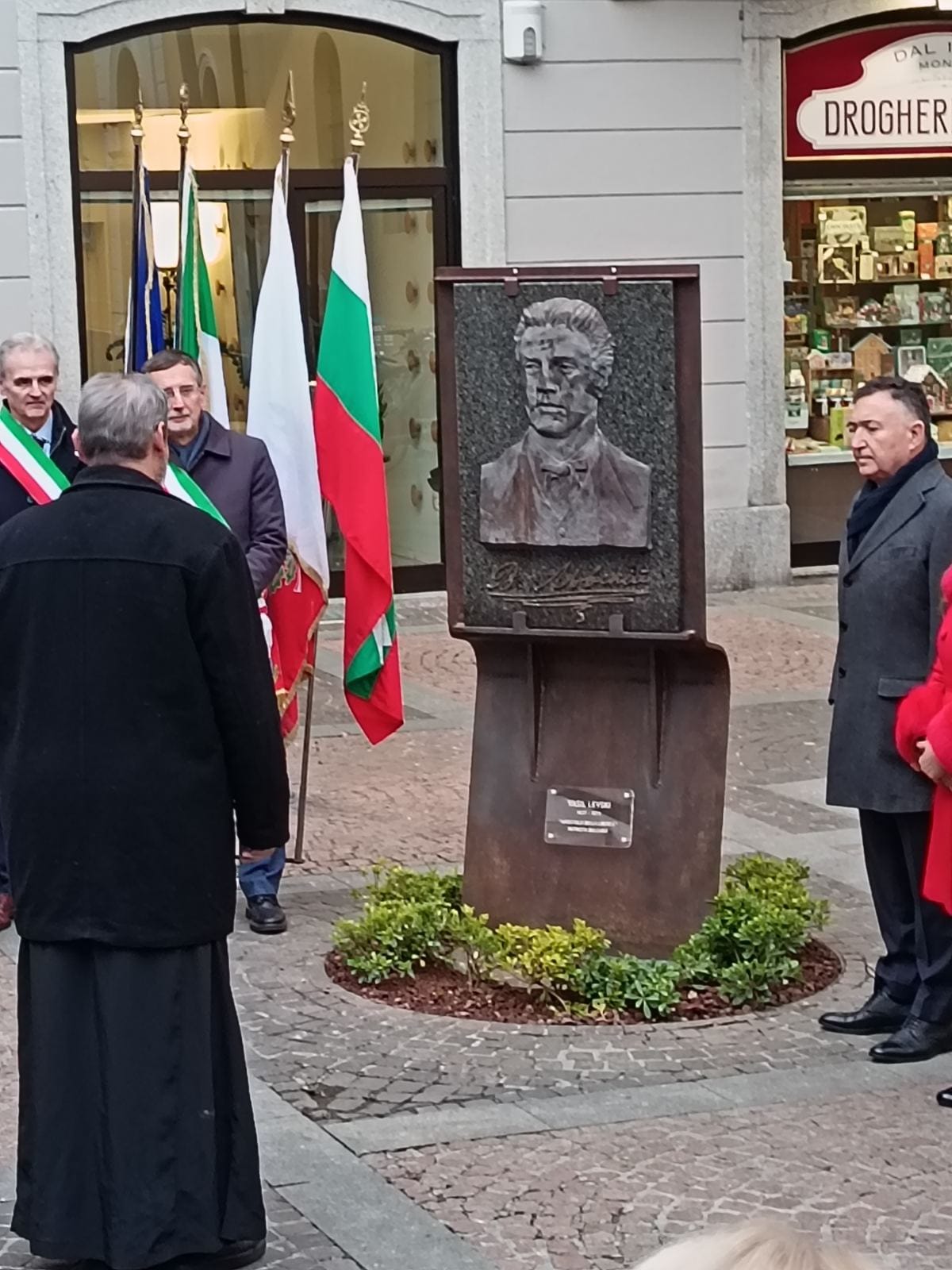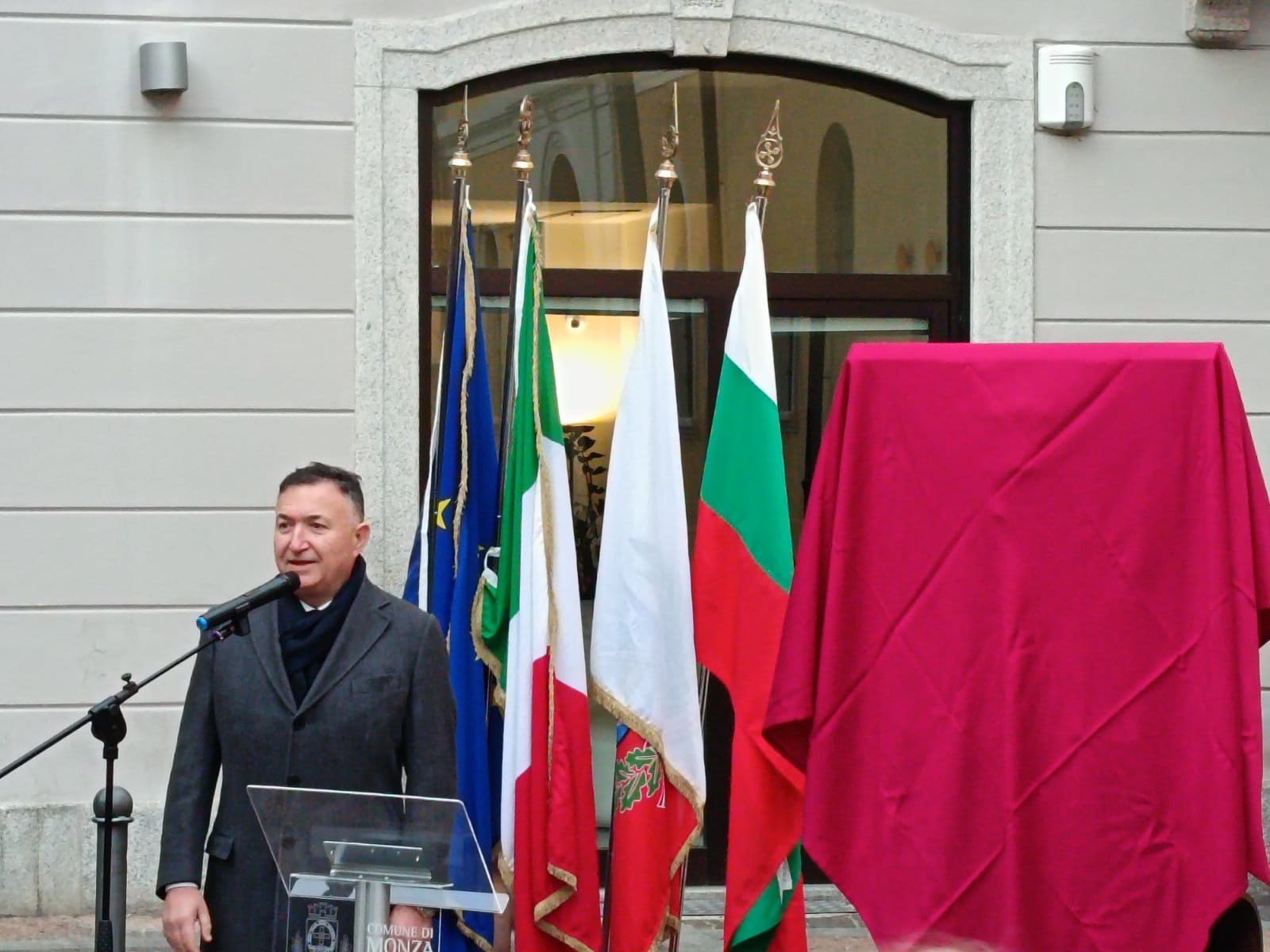 Институционално приветствие беше отправено и от г-жа Стела Димитрова, директор на дирекция „Двустранно европейско сътрудничество“ към МВнР на Република България, която присъства специално по повода на официалното откриване. Тя подчерта значимостта на издигането на барелефа за всички българи, които отдават почит на делото и каузата на Апостола на свободата и обърна внимание на символичния смисъл от поставянето на барелеф на Васил Левски в историческия център на Монца – жест, който напомня на нашите сънародници зад граница за каузата, която е отстоявал и същевременно олицетворяваща дългогодишните приятелски връзки и тясното сътрудничество между България и Италия.