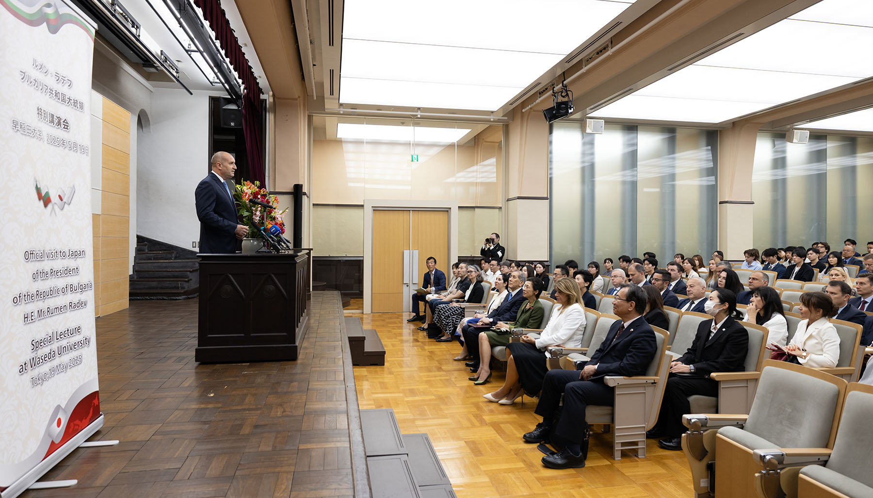 В Токио на 19 май президентът Радев имаше аудиенция с императора на Япония Н. В. Нарухито. По-рано в университета „Васеда“ в японската столица българският президент изнесе лекция, посветена на отношенията между България и Япония. Президентът проведе среща с ректора на университета проф. Айджи Танака и заедно с принцеса Такамадо, член на императорското семейство, разгледа изложбата „България-Япония – политика, дипломация, личности и събития“.