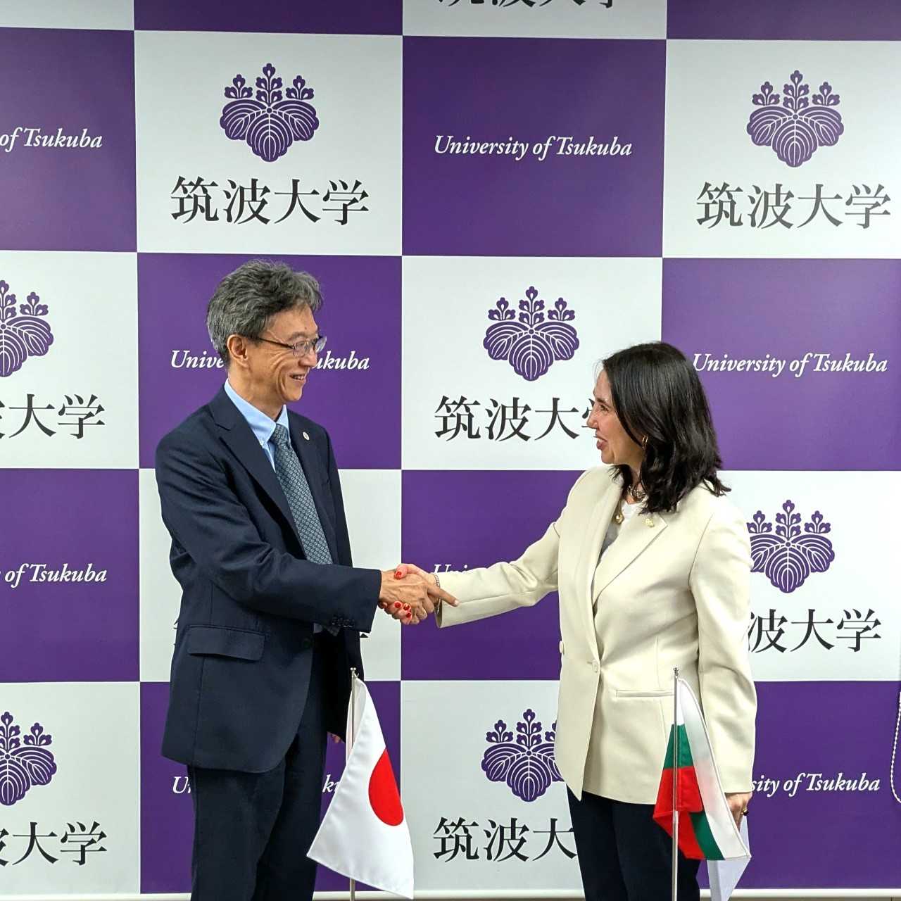 В рамките на посещението си в Университета Цукуба посланик Арабаджиева проведе и среща с вицепрезидента по научините изследвания на университета проф. Ясунори Ендо, с когото обсъди възможностите за сътрудничество както на двустранна основа, така и по линия на програма „Хоризонт Европа“.