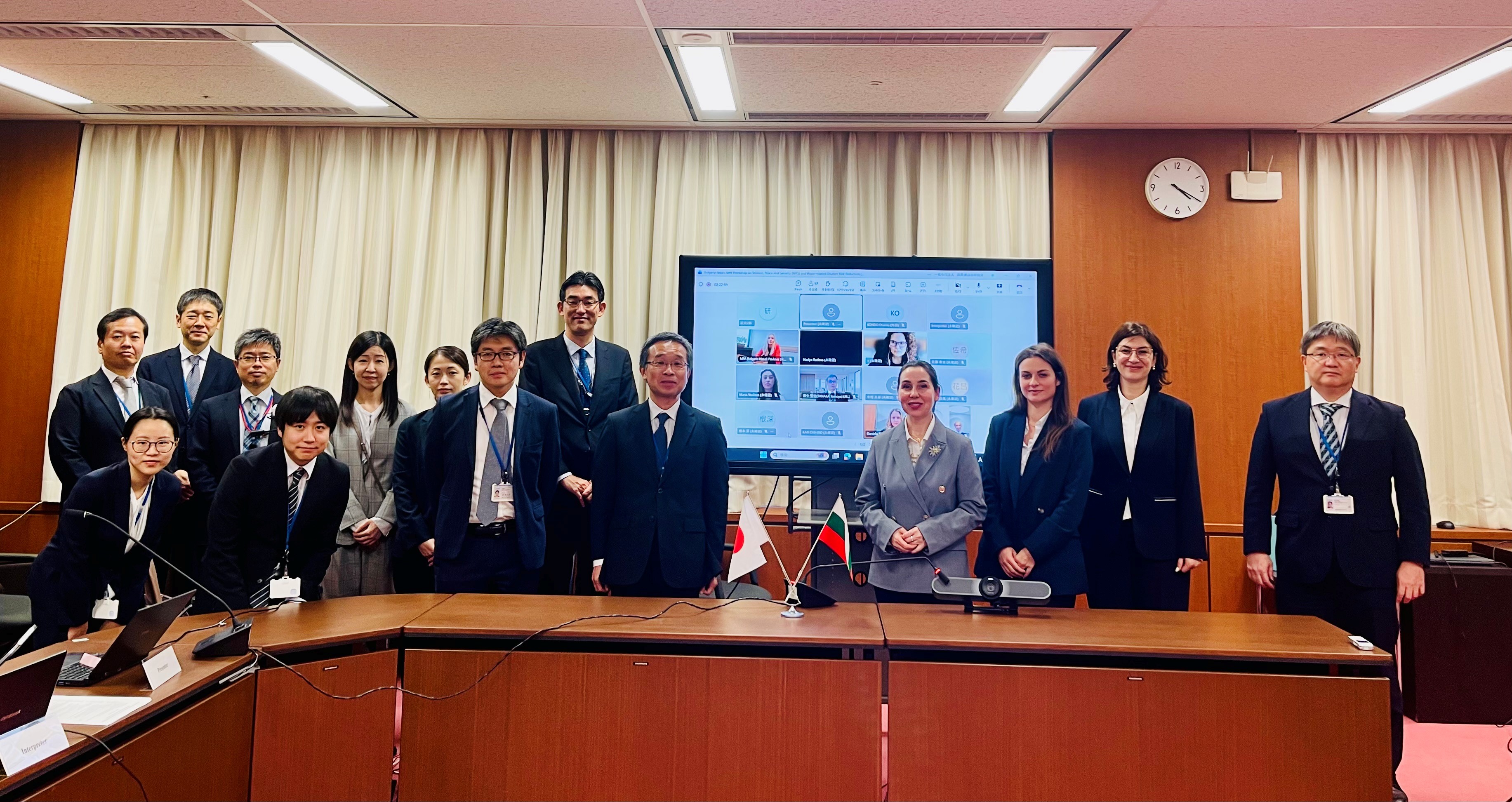 На 5 ноември 2025 г. в Токио се проведе първото издание на Българо-японския уъркшоп на тема „Жени, мир, сигурност“ (WPS) и намаляване на риска от бедствия, свързани с водите и водните ресурси, в хибриден формат. Събитието се организира от Посолството на Република България в Токио и Министерството на земята, инфраструктурата, транспорта и туризма (МЗИТТ) на Япония. Семинарът се проведе в рамките на 3 сесии, в които взеха участие презентатори от 7 институции - МВнР, МВР, МО и МОСВ от българска страна и МЗИТТ, МВнР и Кабинета на министър-председателя на Япония.