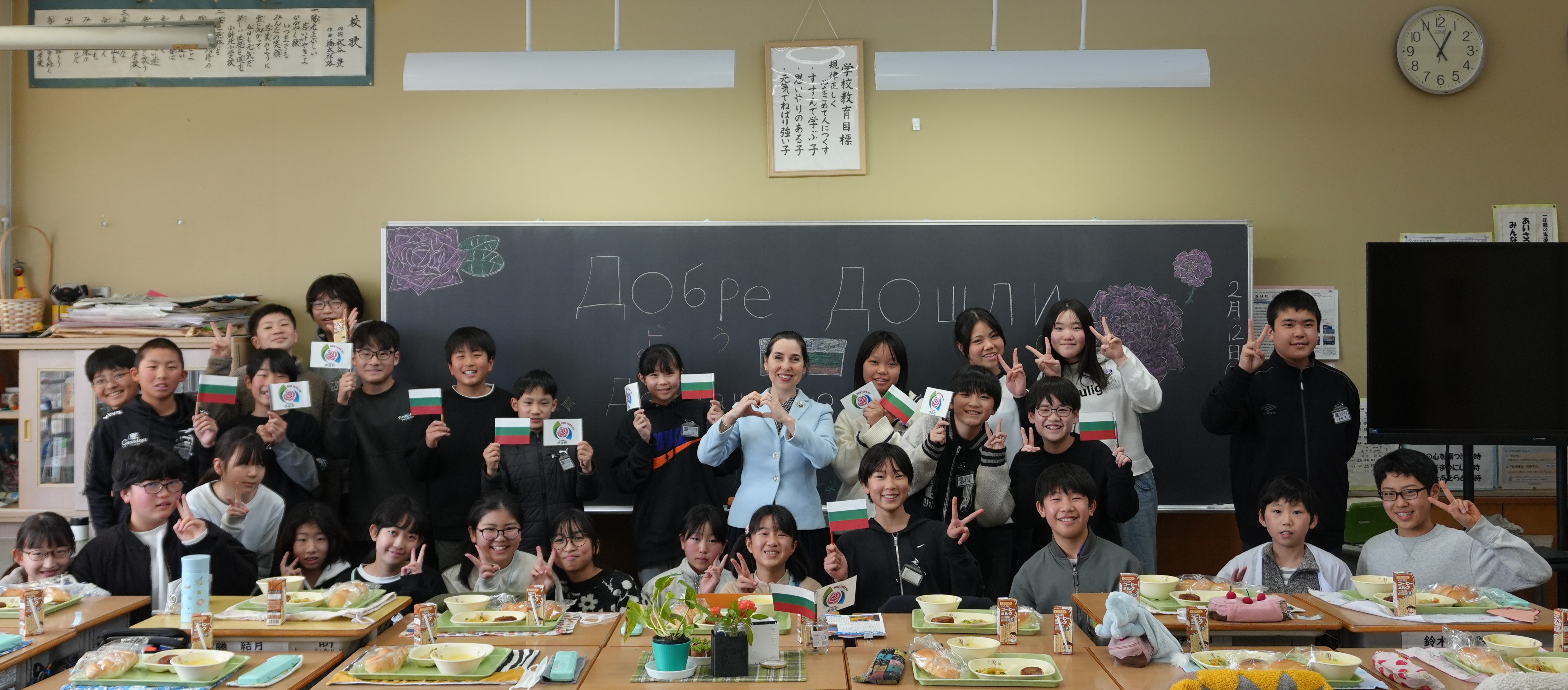 Посланик Арабаджиева и служителите на посолството се включиха в урок, посветен на България, в начално училище Кобарикита в град Ина. В урока участваха 130 ученици от шести клас. Те бяха приветствани от посланик Арабаджиева и г-н Ошима, кмет на град Ина. Г-жа Костова запозна учениците с традицията за розопроизводство и Празника на розата, българската храна и ги научи да се представят на български език. Г-н Стоян Иванов проведе викторина, в която всички ученици и гости от община Ина активно участваха. След представянето на България, учениците запознаха всички присъстващи с извън класната дейност на отглеждане на рози и изработване на сувенири с рози, използвайки 3Д принтер и други материали.