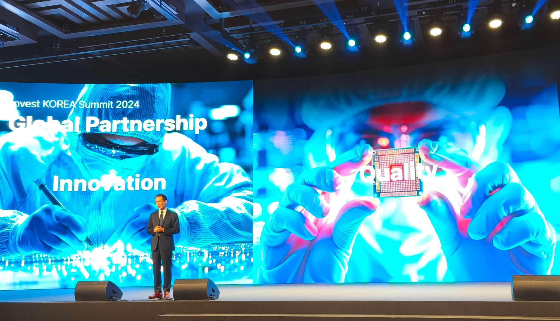 Водещата презентация в първия ден на мащабното събитие бе на комисаря на Invest KOREA Ким Те Хьонг, който коментира рекордния размер на преките чуждестранни инвестиции, постигнати през последната година, като най-голям растеж се отчита в секторите високите технологии, възобновяемата енергия и културното съдържание. По негови думи, агенцията ще продължи да подпомага международни компании чрез индивидуални консултации и „one-stop“ административно обслужване, както и чрез по-тясно сътрудничество с регионалните власти за ускоряване на инвестиционните процедури. Комисарят определи Република Корея като регионален център за иновации и зелени инвестиции, като подчерта, че форумът е площадка за технологично лидерство и устойчив преход.