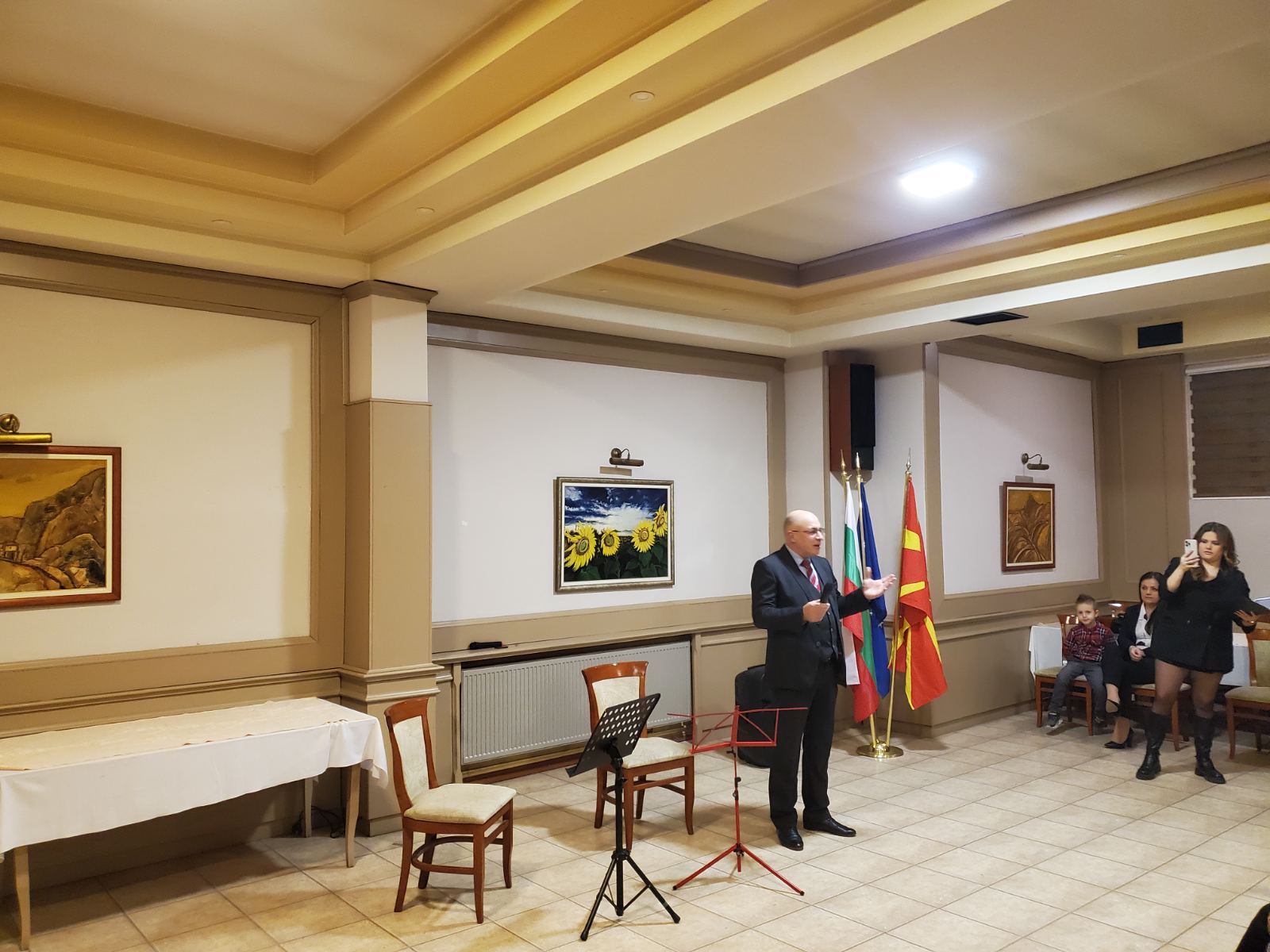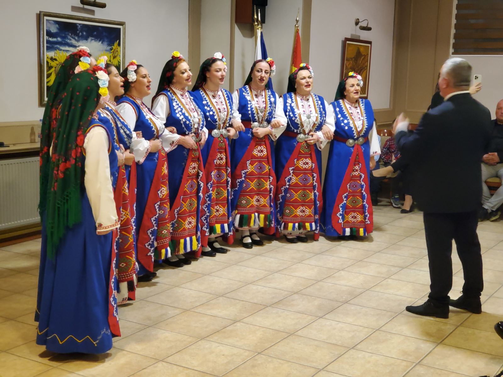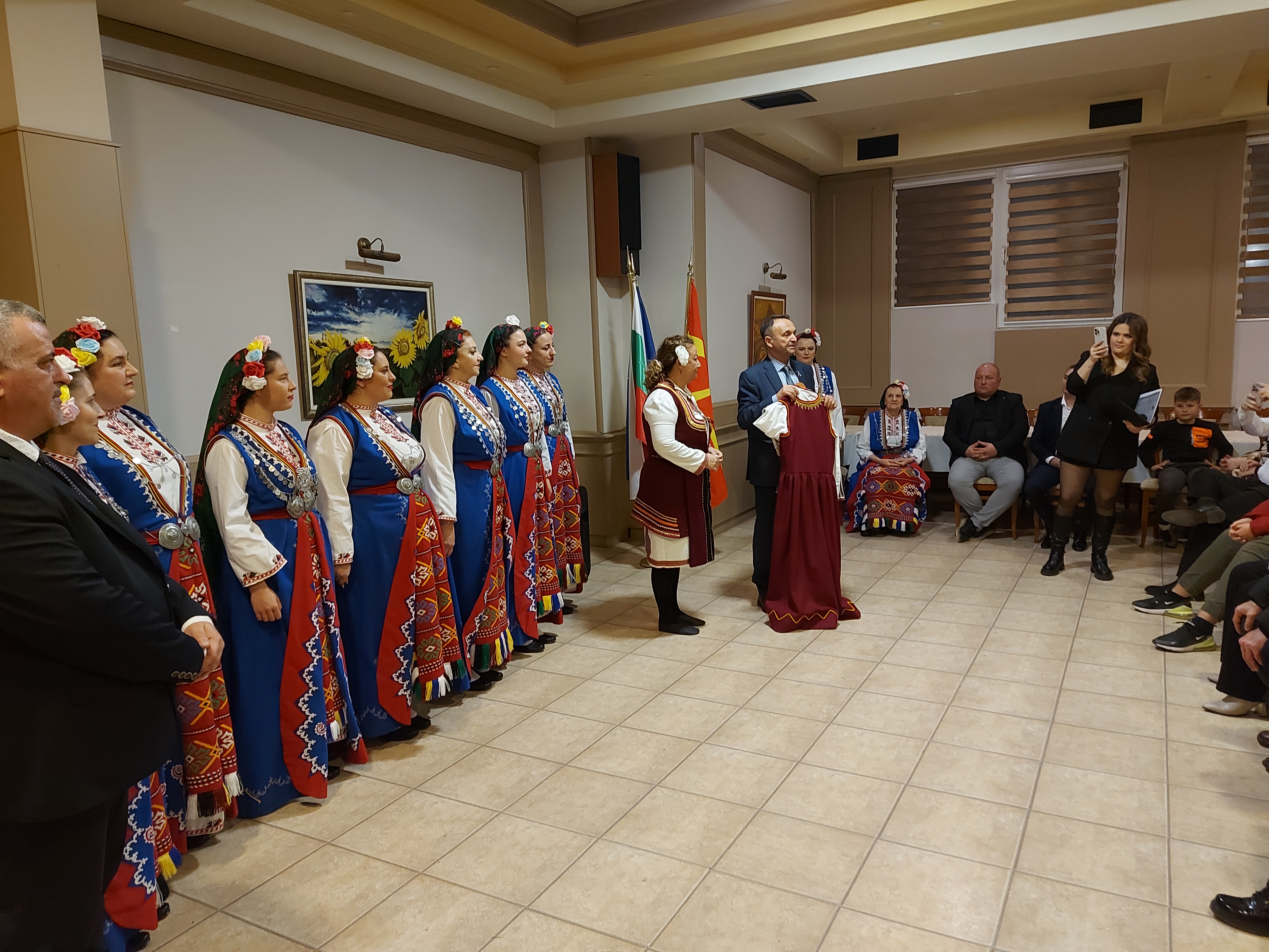 Гостите бяха поздравени и от г-н Васил Новоселски, председател на настоятелството на Народно читалище „Никола Й. Вапцаров“, който също поднесе пожелания за много здраве и успехи към всички присъстващи. От страна на читалището, той връчи на фолклорната танцова формация „Искра“ две специално подготвени дамски народни носии. С тях, и с дарените от Съюза на народните читалища в България други 3 комплекта бе поставено начало на сценичния гардероб на танцовата формация в Битоля.