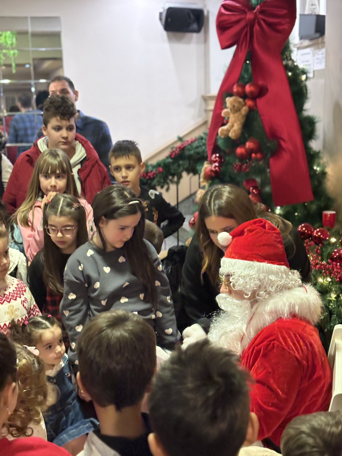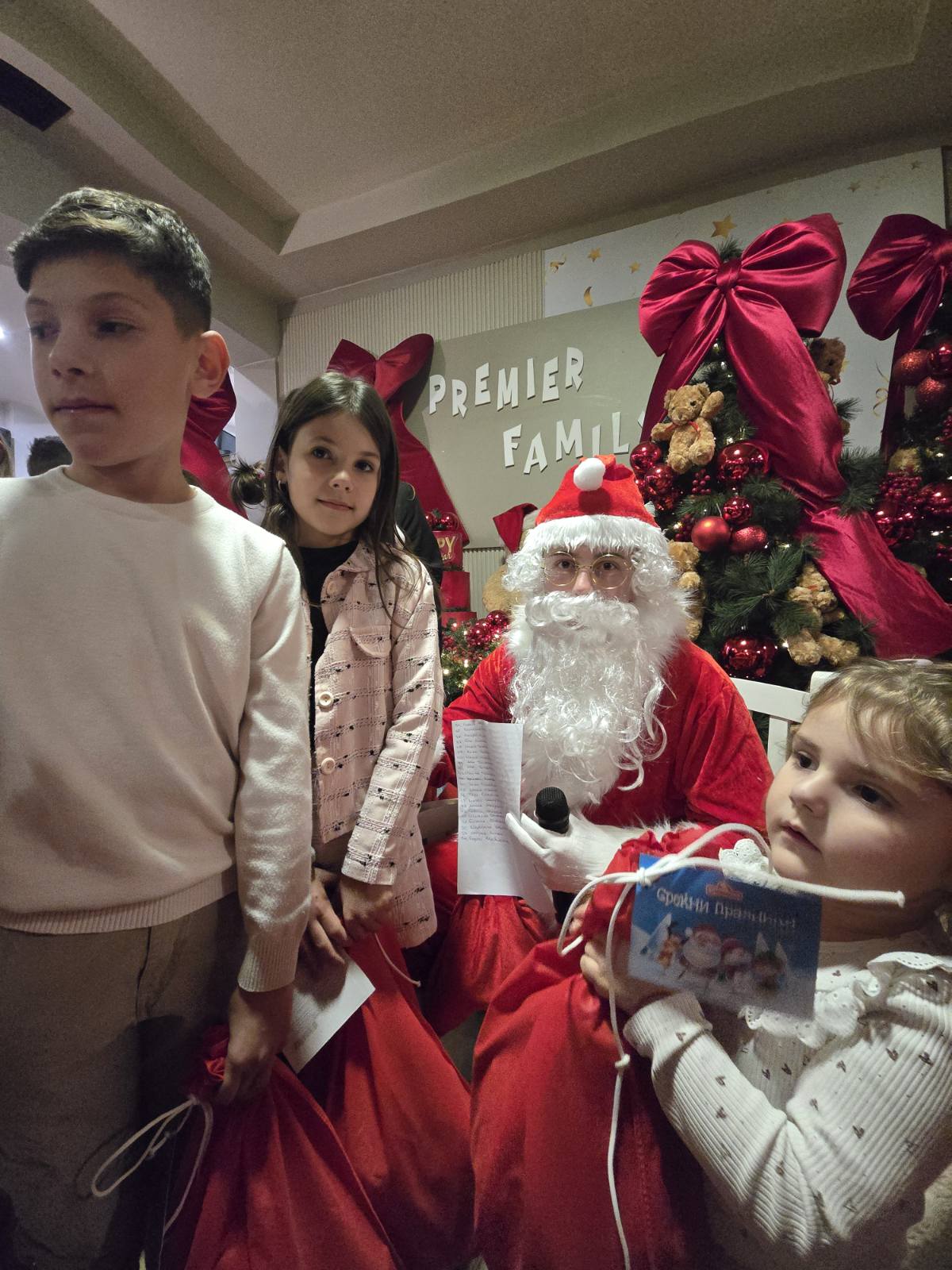 Специално място в тържеството зае и пристигането на дядо Коледа, който раздаде на най-малките гости пакети с подаръци, изпратени от Посолството на Република България в Скопие.