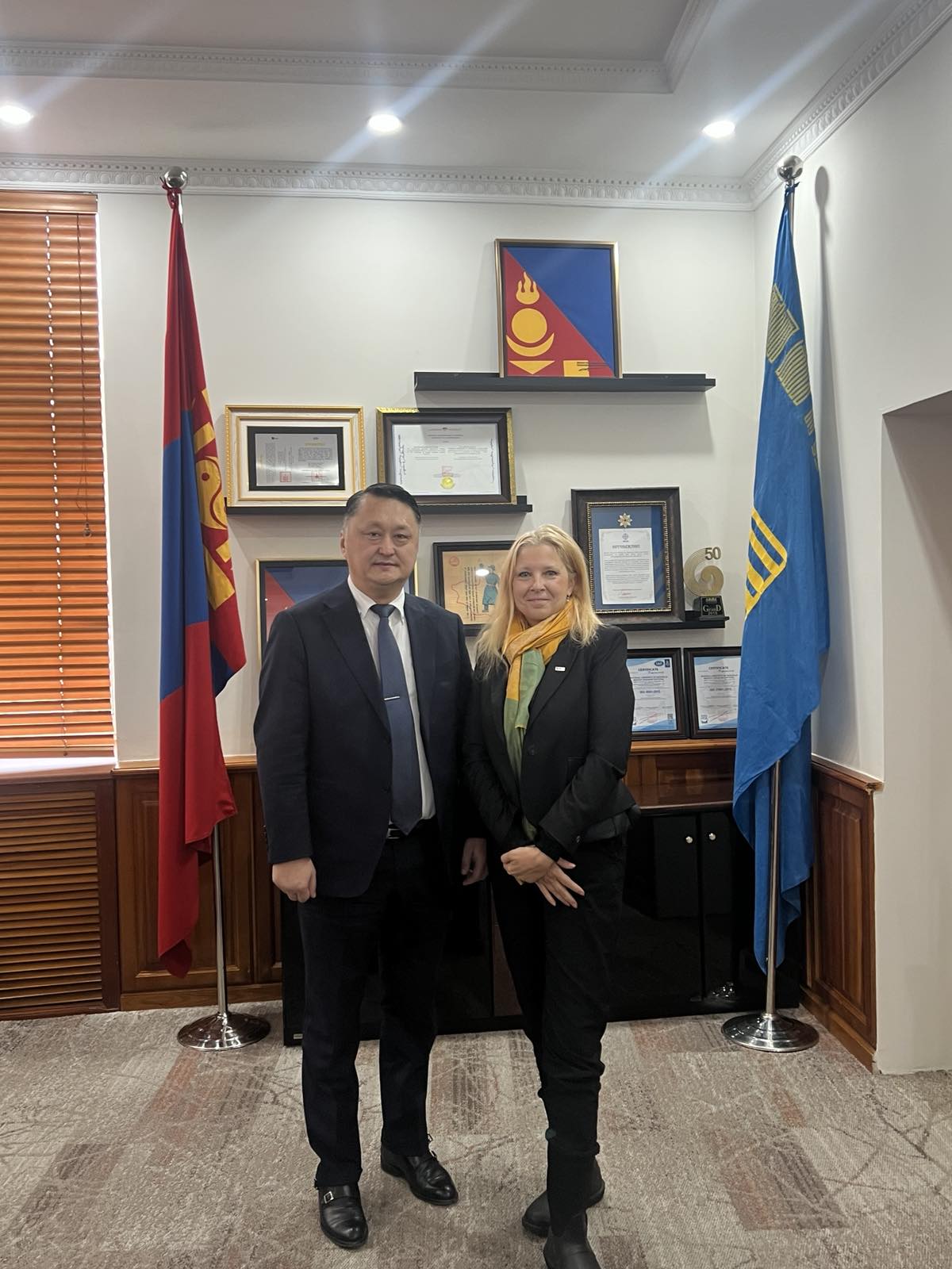 Временно управляващият посолството на Република България в Монголия, г-жа Александрина Гигова, проведе среща с ректора на Националния университет на Монголия (НУМ) г-н Очирхуяг Баянжаргал. Присъстваха още г-н Г. Сундев, зам. ректор, г-жа М. Шурай, ръководител на отдел „Сътрудничество“ и г-н Болд-Ердене Бааст, декан на факултета по изкуства и науки, завършил образованието си в Софийския университет „Св. Климент Охридски“, специалност „Журналистика“ през 1995 г.