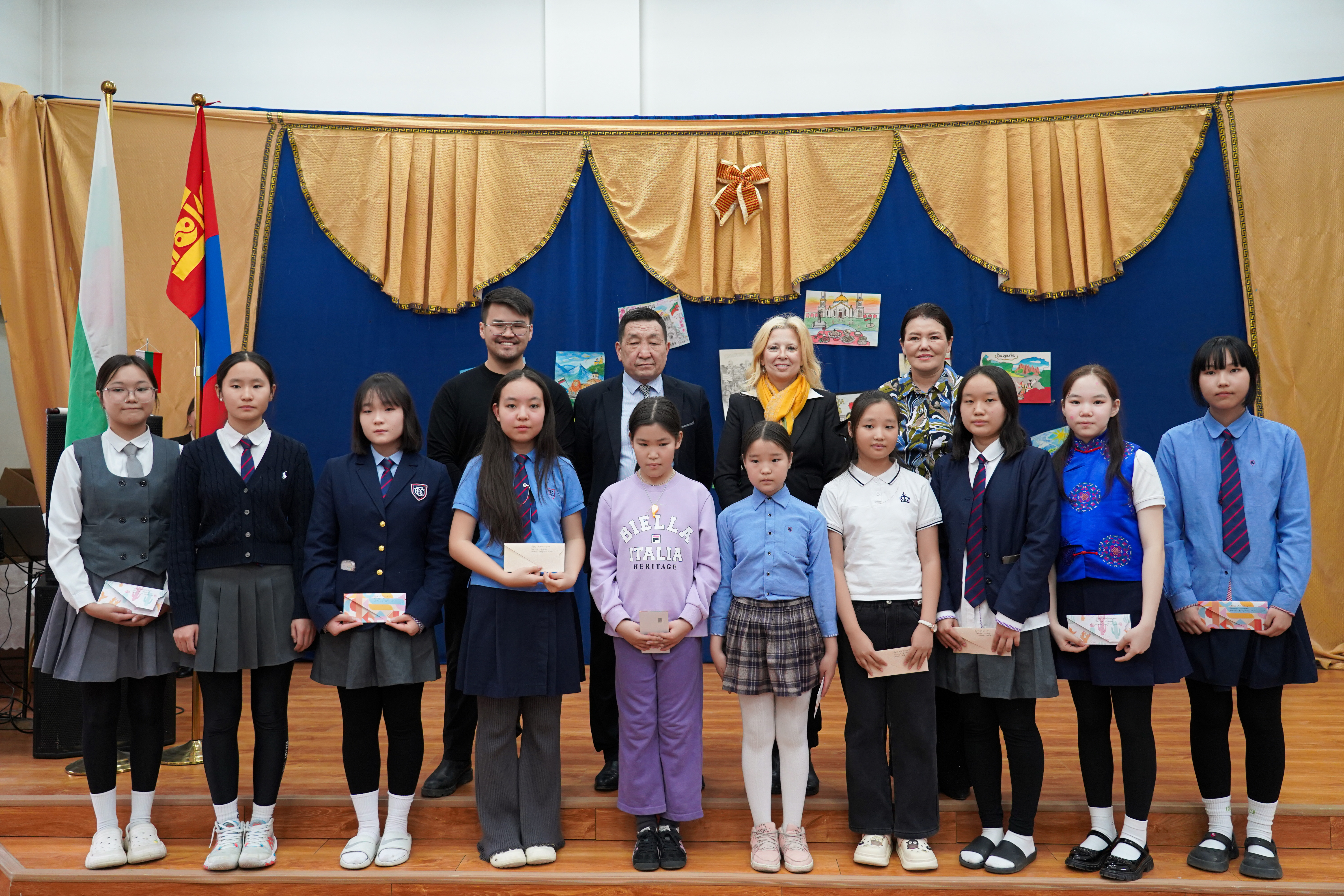 Временно управляващият посолството на България в Улан Батор г-жа Александрина Гигова отправи приветствия към присъстващите и запозна децата с българските традиции и култура.