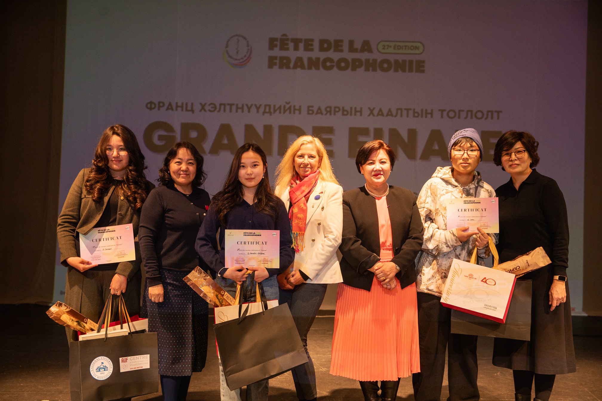 Ръководителят на Посолството на Република България в Улан Батор, г-жа Александрина Гигова, участва в журито на Големия финал на обявените конкурси в категория за песен, изпълнена на френски език.