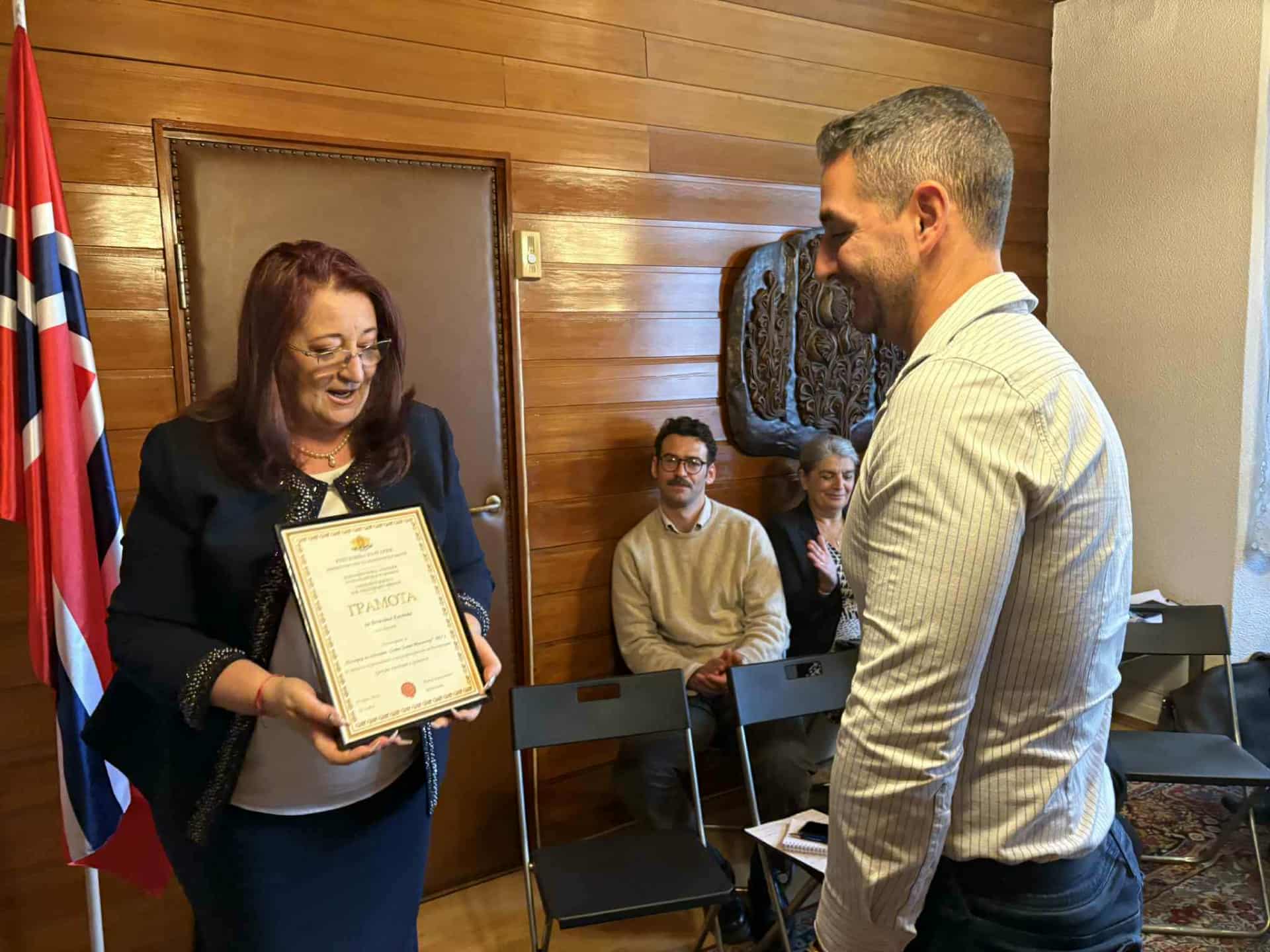 В рамките на срещите г-жа Манджукова връчи на Българо-норвежкото дружество в Осло грамота на г-жа Венелина Костова, председател на дружеството, която е номинирана за „Българка на годината – Света Злата Мъгленска“ за принос в съхраняването и популяризирането на българските култура, традиции и духовност. БНУ в Осло и Ставангер получиха от ИАБЧ книги за техните ученици, а посланик Десислава Иванова предаде благодарствено писмо от нея към директора на норвежкото училище, където БНУ в Ставангер провежда своите занятия.