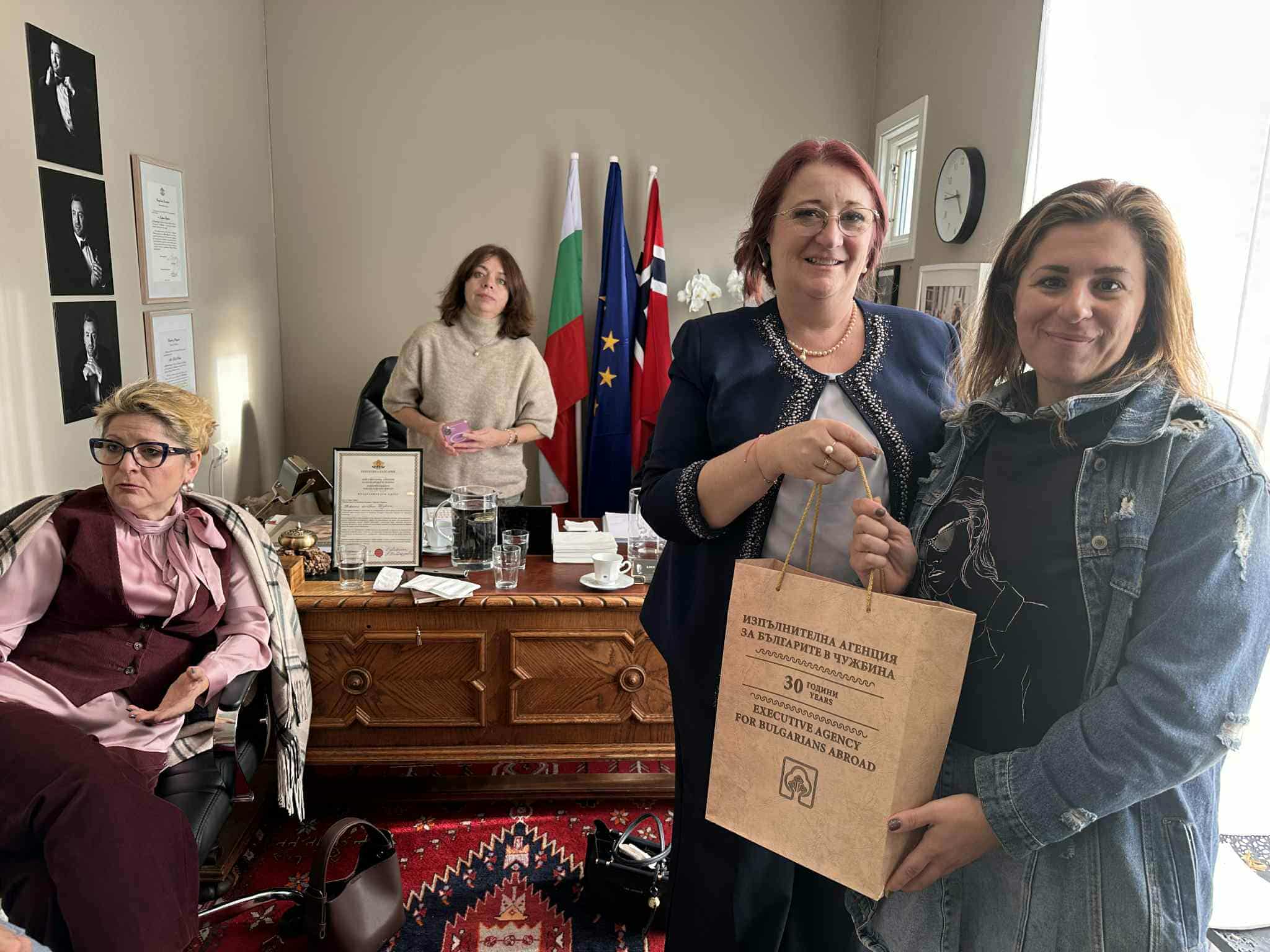 Извънредният и пълномощен посланик на Република България в Кралство Норвегия г-жа Десислава Иванова и изпълнителният директор на Изпълнителната агенция за българите в чужбина (ИАБЧ) г-жа Райна Манджукова проведоха срещи с ръководствата на български организации в Кралство Норвегия и с представители на българската общност в Ставангер и в Осло на 25 и 26 октомври 2025 г.