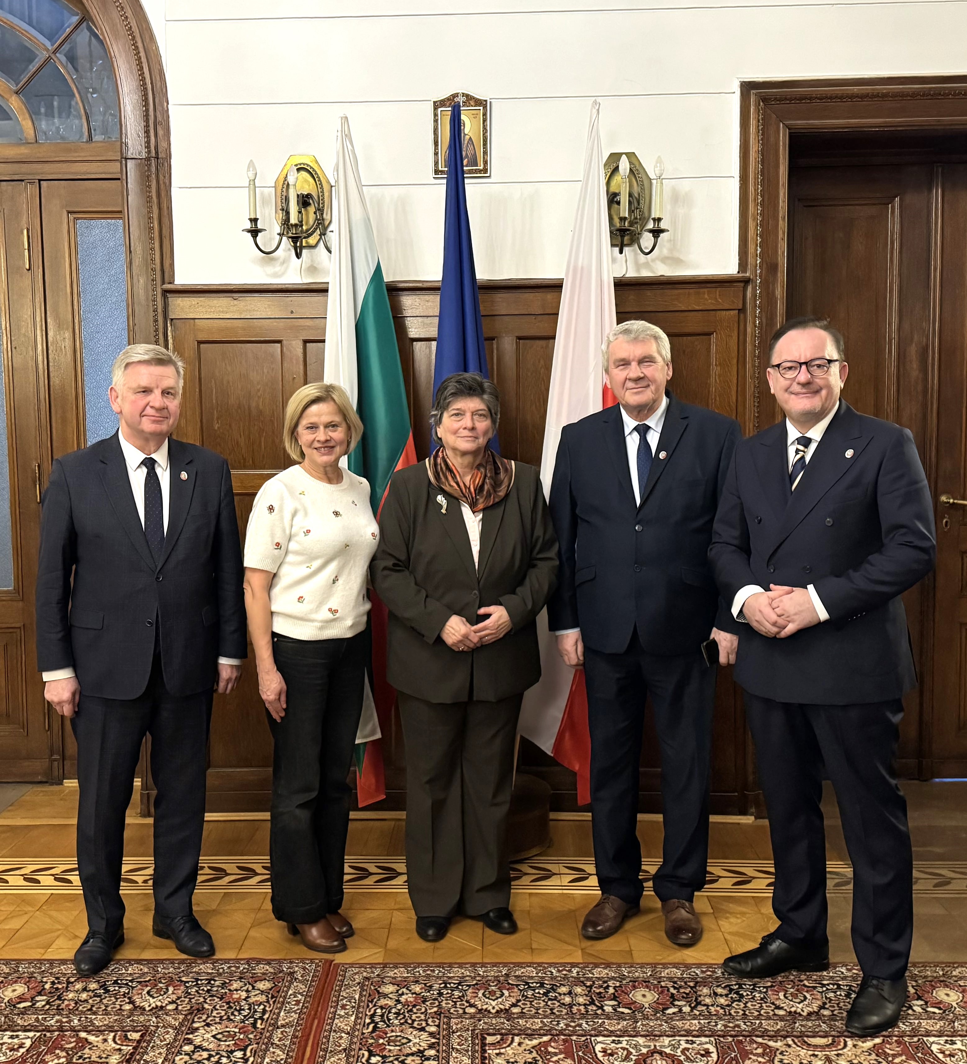 На 27 януари т.г. в посолството във Варшава по покана на посланик Маргарита Ганева към парламентарната Група за приятелство с България в полския парламент се проведе Новогодишна среща, на която присъстваха от Сената: Роберт Мамонтов – председател на Групата за приятелство с България, Ярослав Русецки и Ришард Майер, тримата от партия „ПиС“ и депутата от Сейма Божена Желазовска от коалиция „Гражданска платформа“, която същевременно заема и длъжността на държавен секретар в полското Министерство на културата. На срещата бе поканен и присъства и г-н Ян Стравински, почетен консул на България в Гданск, който е и председател на Асоциацията на почетните консули в Полша.