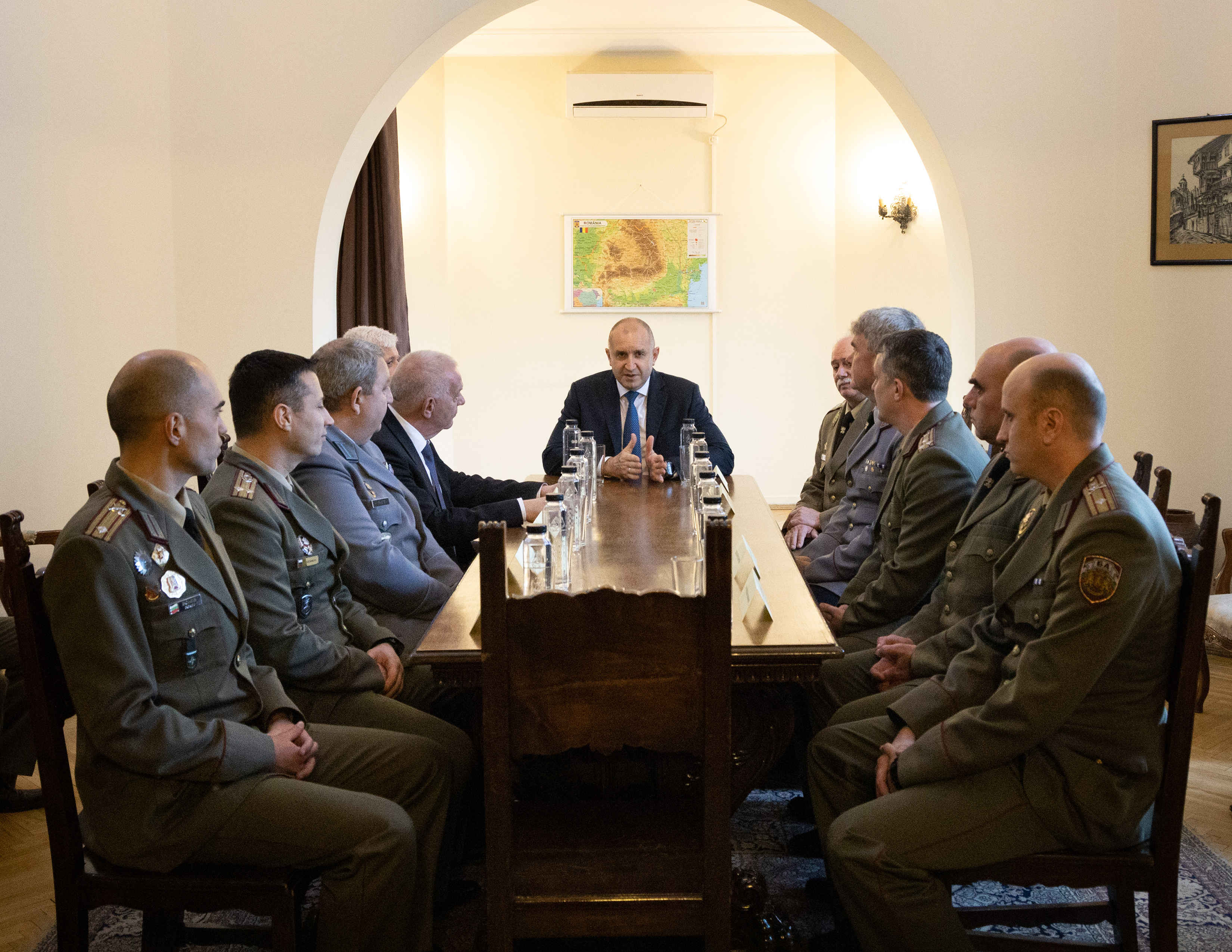 След разговорите с румънския си колега, президентът Румен Радев посети Посолството на Република България, където проведе среща с български военнослужещи от състава на многонационалната дивизия на НАТО „Югоизток“ в Букурещ.