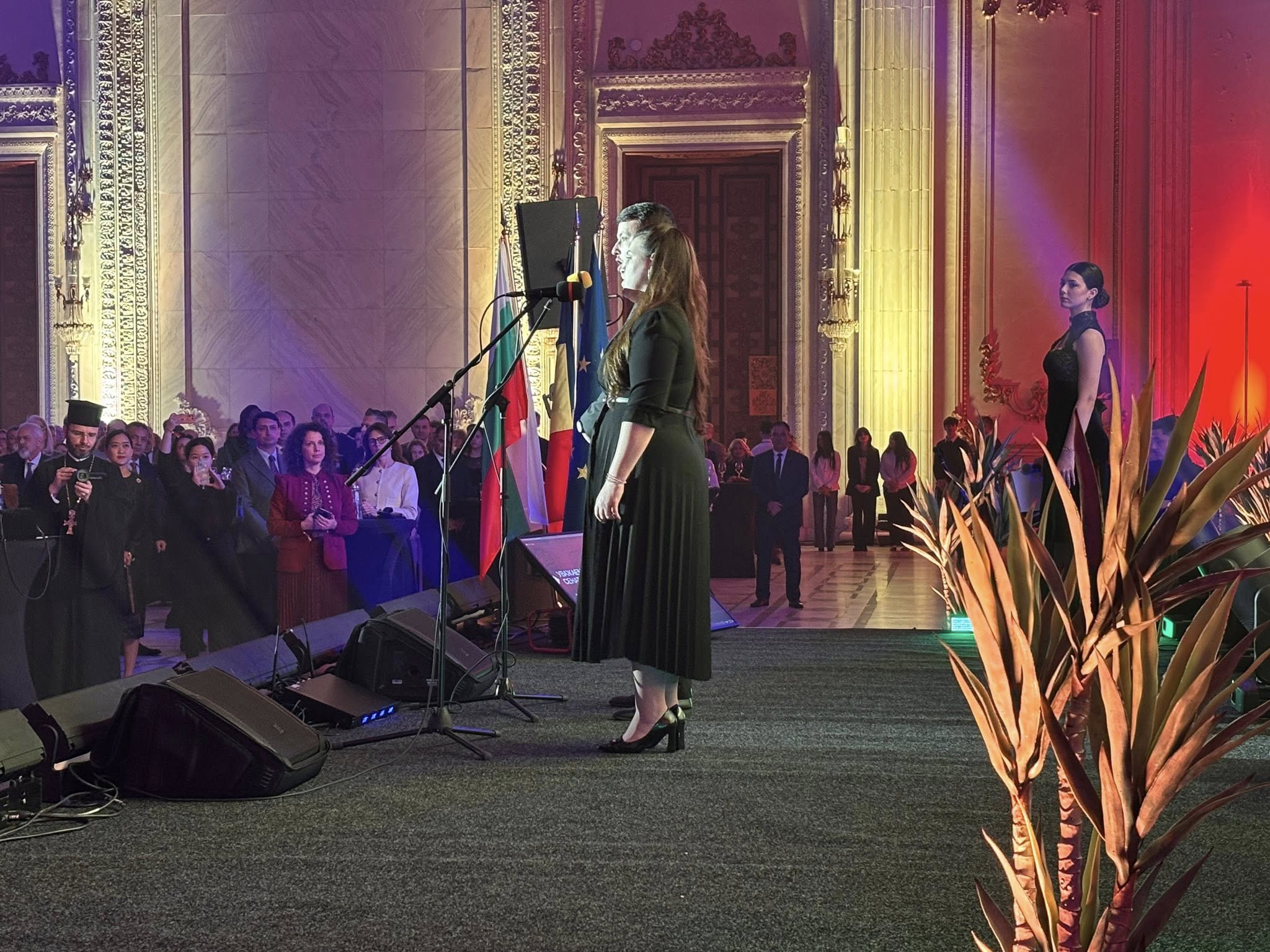 Официалната програма на приема беше открита с изпълнение на националните химни на България и Румъния от оперните певци Ана-Мария Спатарис и Емилиян Йоан Неделча, последвано от химна на Европа – „Одата на радостта“.