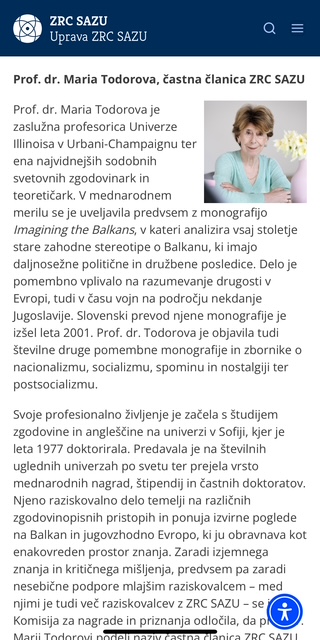 Историкът проф. д-р Мария Тодорова бе удостоена със званието „Почетен член” на Научно-изследователския център (НИЦ) на Словенската академия на науките и изкуствата (САНИ). Това стана на церемония в рамките на 32-то издание на събитието „Поколения на науката” на 17 април т.г. в Любляна. Изтъкнатият учен с кариера в България и чужбина бе отличена наред с изследователи от Словения в областта на обществените и природните науки.