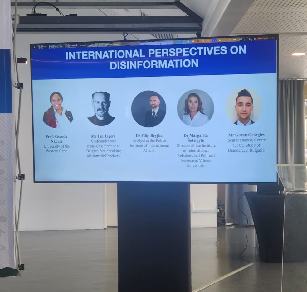 На 18.02, в Кейптаун, се проведе семинар под надслов „Противодействие на дезинформацията за защита на местната демокрация“, организиран от Делегацията на ЕС в Претория заедно с посолствата на Испания, Полша, Литва, България и Белгия (Фландрия), в рамките на инициативата „Екип Европа“. Събитието се състоя в светлината на предстоящите местни избори в Южна Африка и ускорените промени в глобалната и регионална информационна среда, съдържащи непосредствени рискове за интегритета на изборния процес и стабилността на демократичните институции. В откриването на форума и в панелните дискусии участие взеха изявени политически фигури от правителството, парламентаристи и журналисти от водещи медии. Основно изказване направи председателят на Независимата изборна комисия на РЮА г-н Мосото Мойпя. От българска страна в дискусиите се включи Горан Георгиев, старши експерт по въпросите на хибридните заплахи и дезинформацията в Центъра за изследване на демокрацията. Участието му бе осигурено с подкрепата на МВнР.