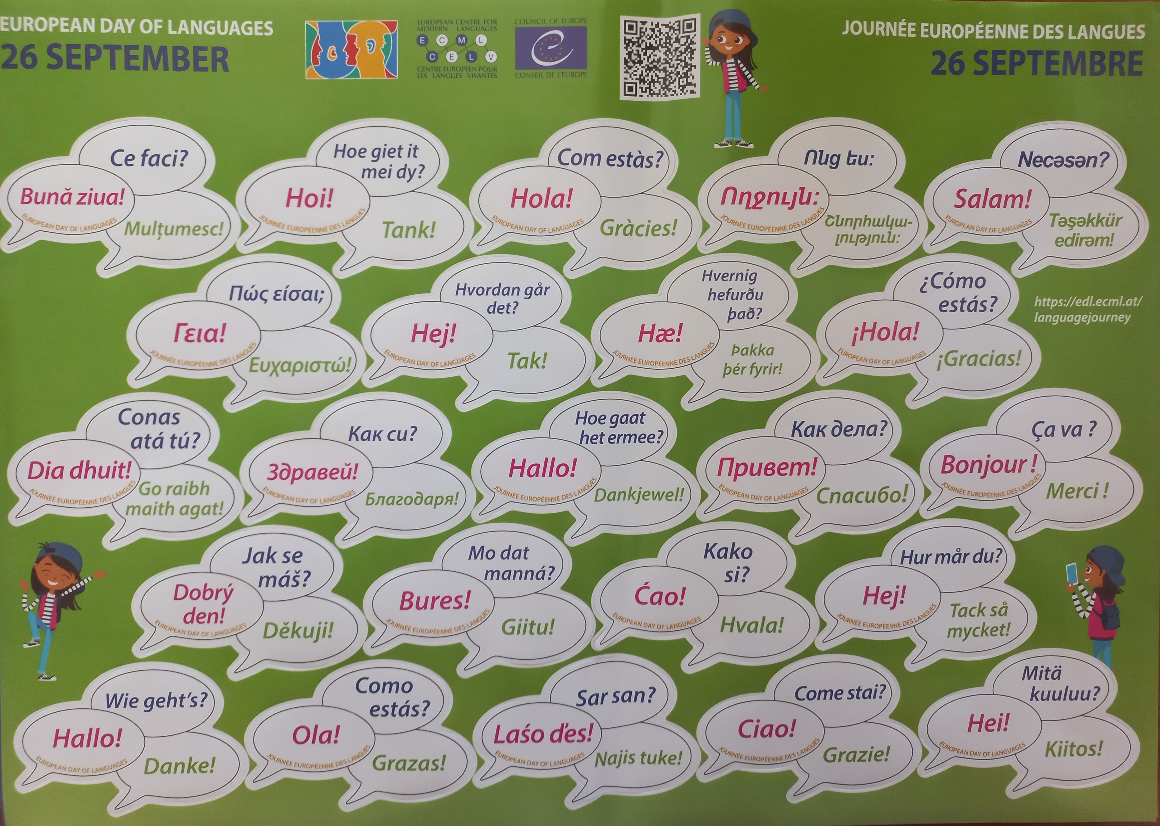 На 25 септември в престижния Клуб на изящните изкуства (Círculo de Bellas Artes) в Мадрид се отбеляза Европейският ден на езиците (26 септември), организиран от мрежата на културните институти EUNIC и делегацията на Европейската комисия. Посолството на Република България в Мадрид участва със свой щанд, с цел да осъществи колкото е възможно по-голям културен и езиков контакт с представителите на разнообразната публика, съставена от граждани на Мадрид и гости на града. Щандът бе посетен от много хора, сред които голям брой деца, проявили сериозен интерес към страната ни, нейния език, история, култура и природни забележителности. Кратки изрази на български език присъстваха на официалния плакат, популяризиращ събитието и раздаван на гостите.