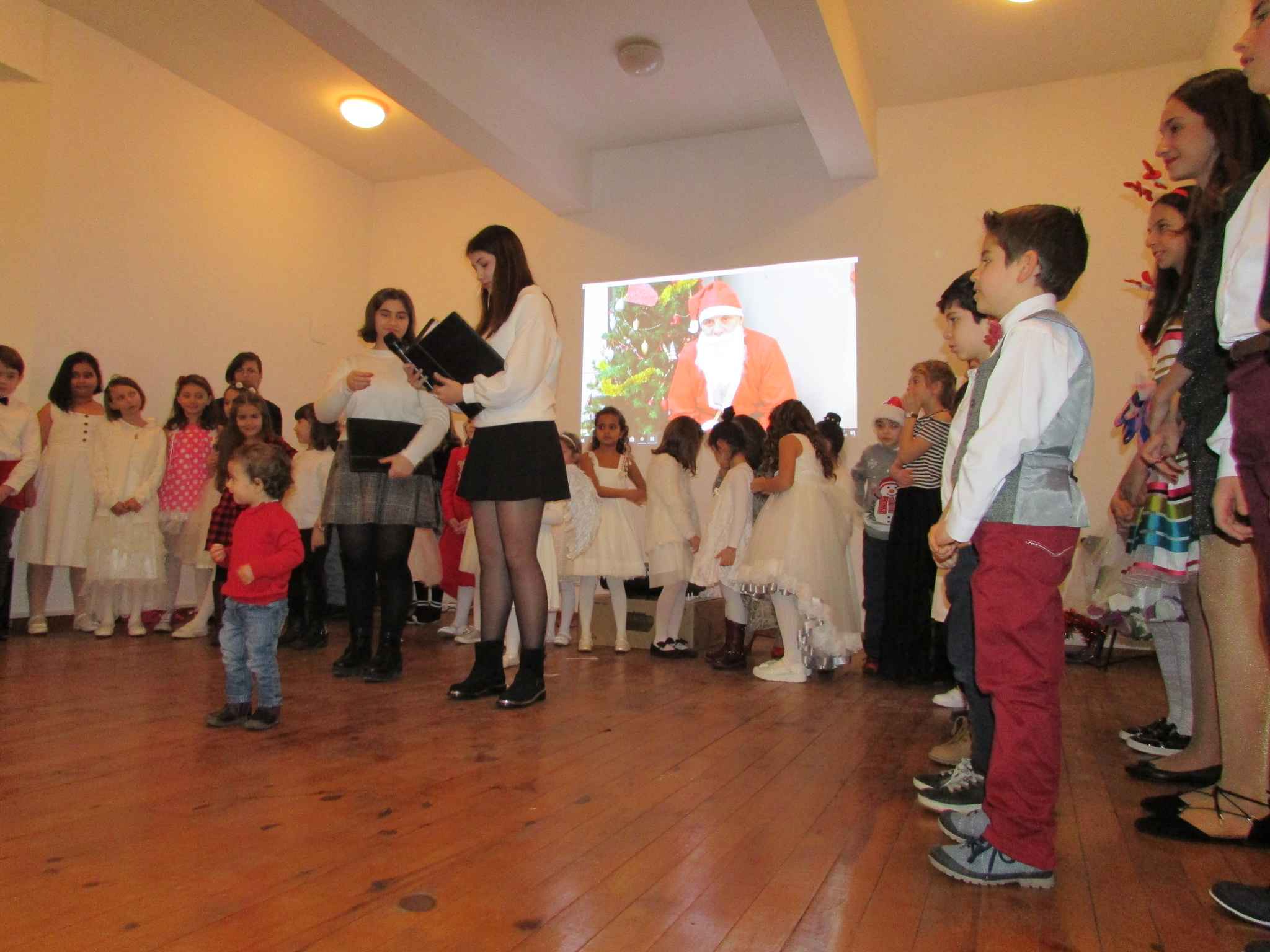 Представянето на програмата на учениците от Българското неделно училище „Св. св. Кирил и Методий“ бе бурно аплодирано от многото гости в препълнения Киносалон в Културния дом на мисията. След изпълнението на седемте мисии, поставени от дядо Коледа, Добрият старец и Снежанка раздадоха подаръци на децата.