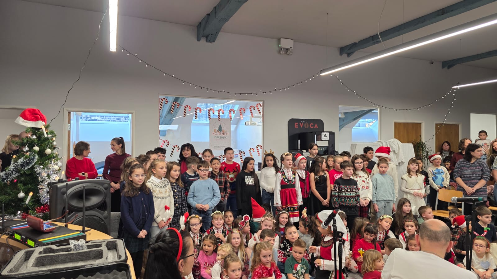 Децата с много вълнение посрещнаха Дядо Коледа и зарадваха него и многобройната публика с адаптирана постановка на „Лешникотрошачката“, народни танци, песни и красиви стихотворения, които изпълваха залата с усмивки, аплодисменти и празнично настроение.