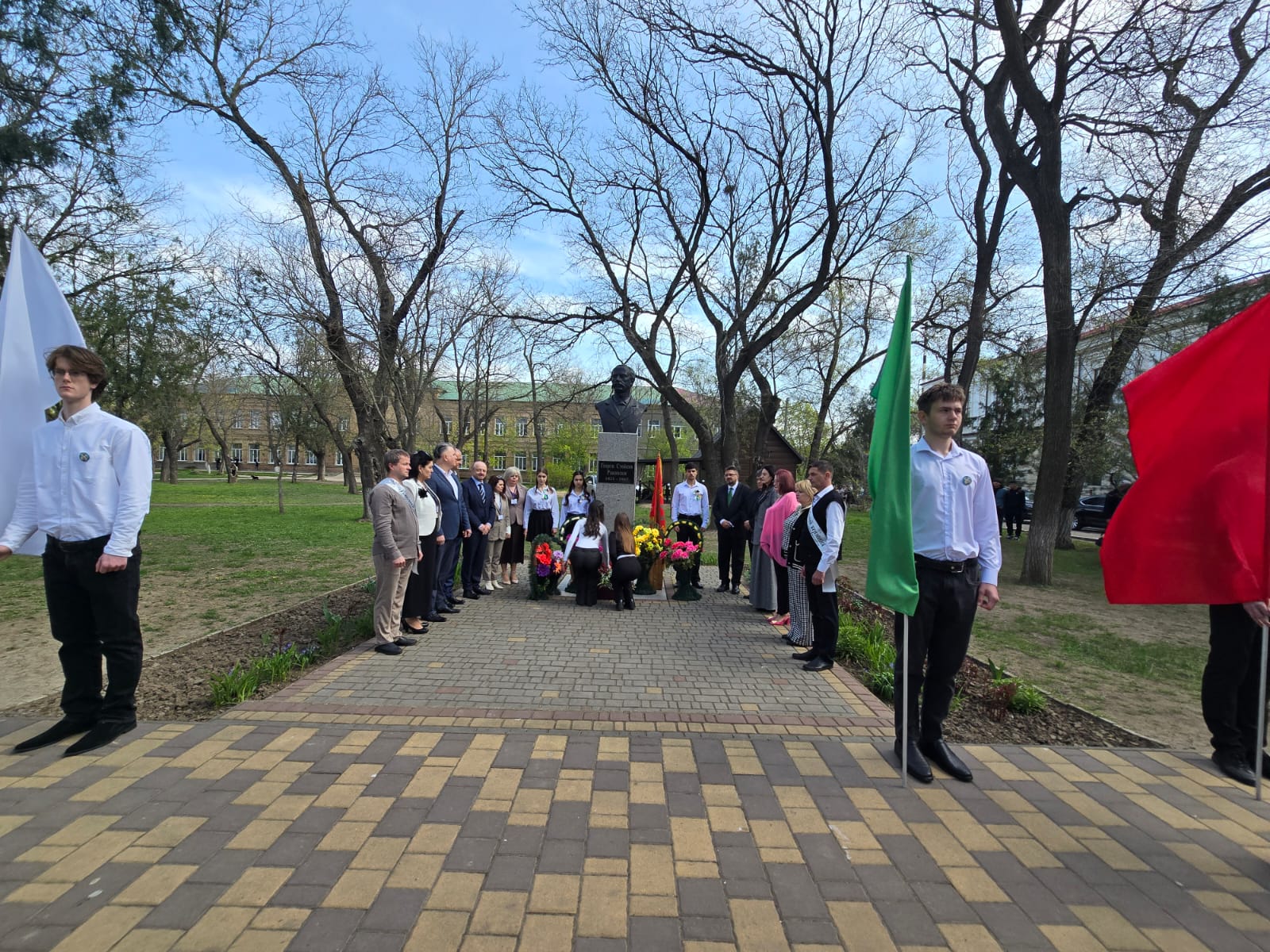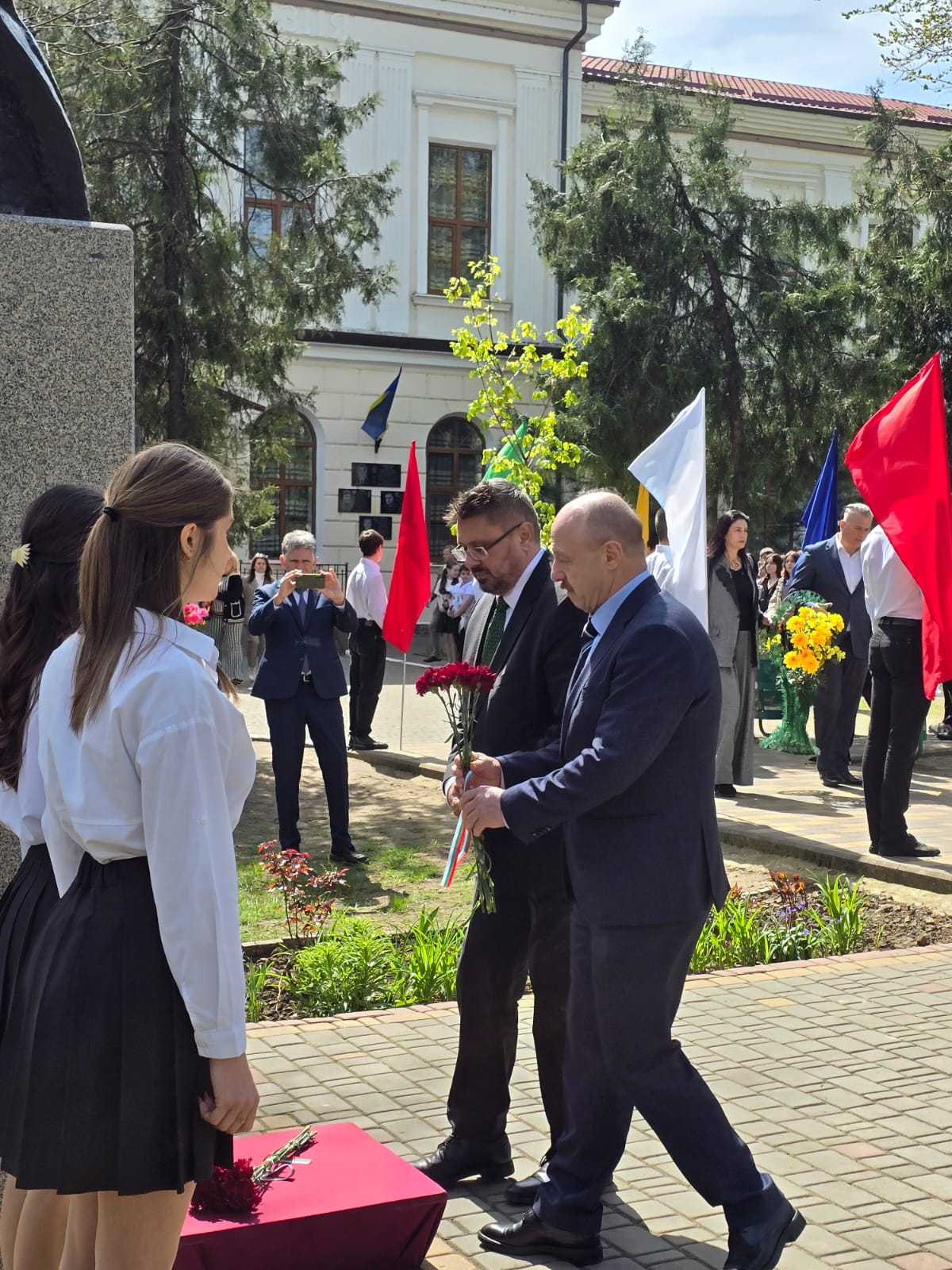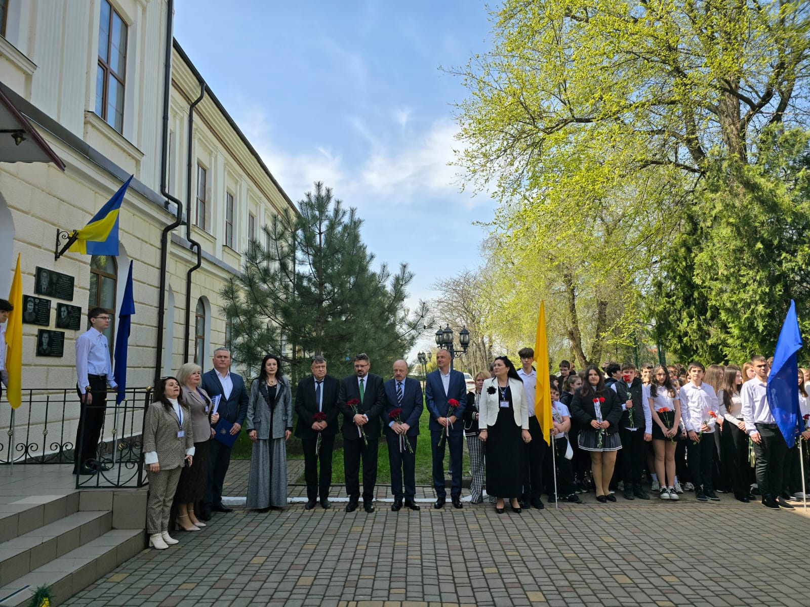 Тържеството започна в 12:00 часа пред сградата на гимназията с поднасяне на цветя пред паметника на Георги Раковски, чийто бюст-паметникът е дело на българския скулптор Иван Лазаров, открит през 1999 г. пред централния вход на Болградската гимназия. Директорът на гимназията Снежана Скорич се обърна към гостите и присъстващите родители с думите, учениците да бъдат достойни потомци на Георги Раковски и на всички български възрожденци, които са оставили своята следа в историята. Тя подчерта, че името на Георги Стойков Раковски обединява поколенията, свързани с гимназията и с българската общност в Бесарабия, добавяйки, че Раковски е личност, с която могат да се гордеят не само възпитаниците на гимназията, но и етническите българи както в Украйна, така и в България. Директорът изтъкна ролята на Болградската гимназия като средище на образование и духовност, допринесло за изграждането на поколения български общественици, като нейни възпитаници са били както министър-председатели на България като Александър Малинов и Димитър Греков, така и видни военни дейци и учени.