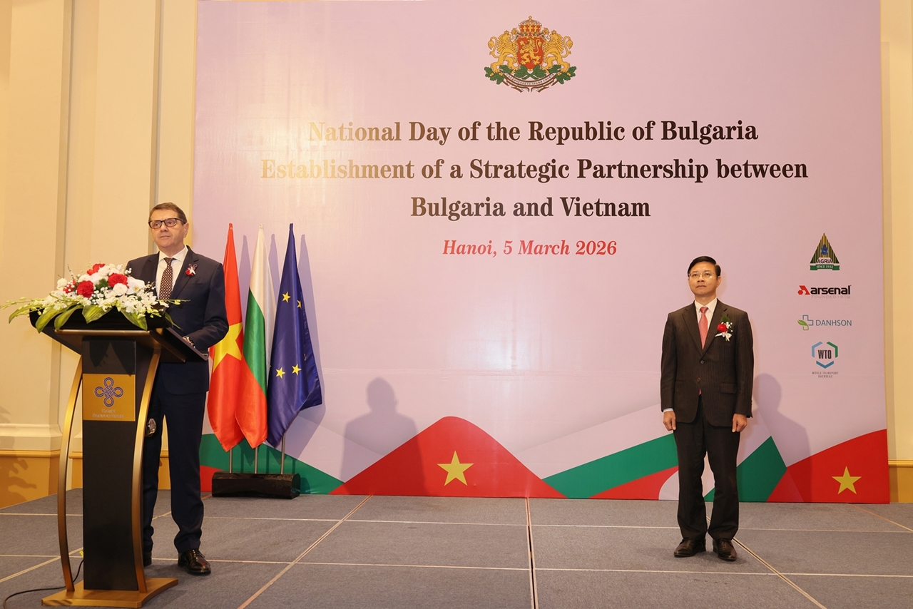 10 Март 2026 НовиниНа 5 март т.г. в представителната зала на х-л Daewoo в Ханой се състоя официален прием по случай Националния празник на Република България – 3 март и установяването на стратегическо партньорство между Република България и Социалистическа република Виетнам. Присъстваха над 200 души, сред които заместник-министърът на външните работи г-н Нго Ле Ван; бившият вицепрезидент на Виетнам г-жа Нгуен Тхи Зоан; ръководители и членове на дипломатически мисии; бивши посланици на Виетнам в България; представители на виетнамски институции, народни комитети на провинции; бизнес организации и фирми от различни сфери; ръководството и членове на Асоциацията за приятелство „Виетнам-България“; народни артисти, музиканти, художници и журналисти; български граждани, живеещи в Ханой.