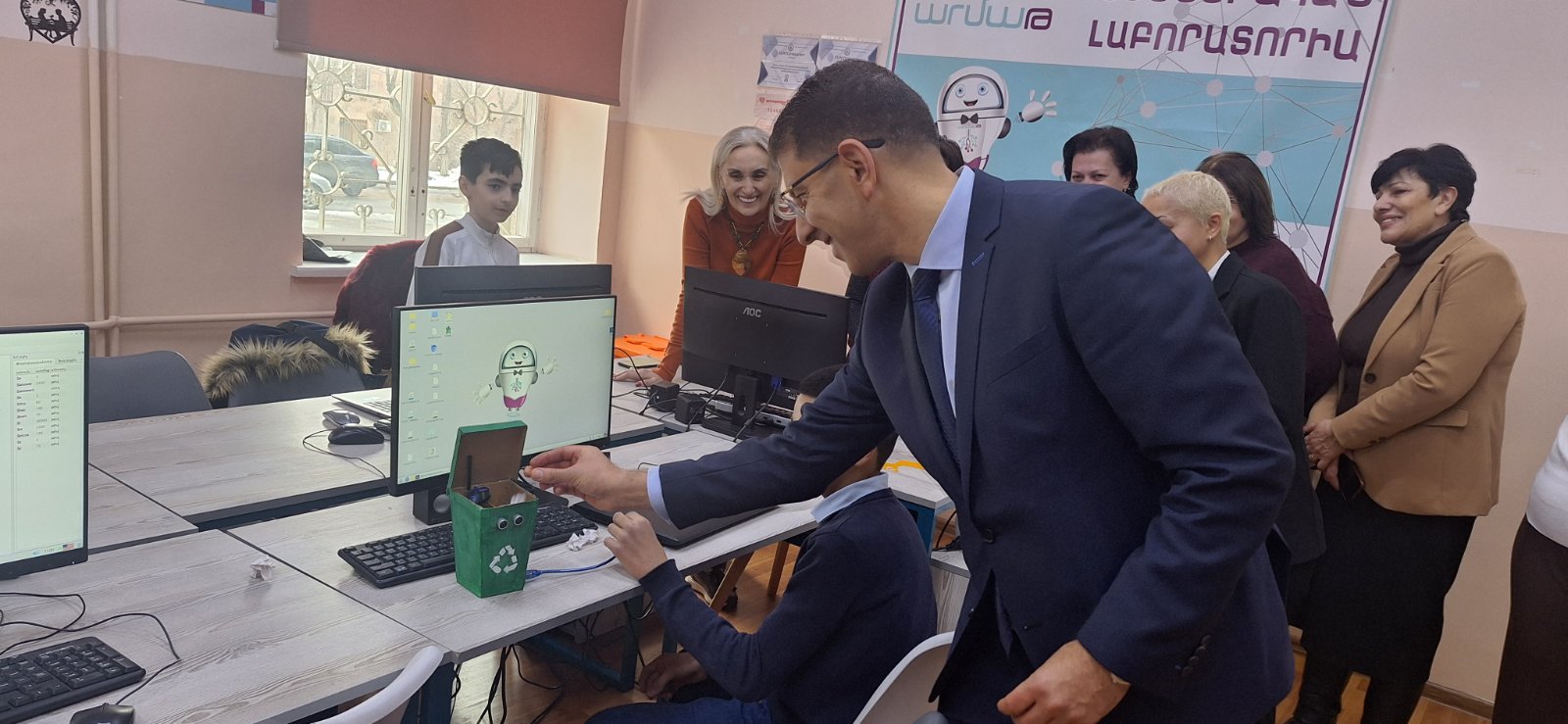 During his visit, the pupils of the Peyo Yavorov School warmly welcomed Ambassador Nikolov. They performed a Bulgarian folk dance and sang the songs "My Country, My Bulgaria" and "Our Beloved Homeland." They also recited the poem "Armenians." The children also presented various inventions they created in the ARMAT laboratory.