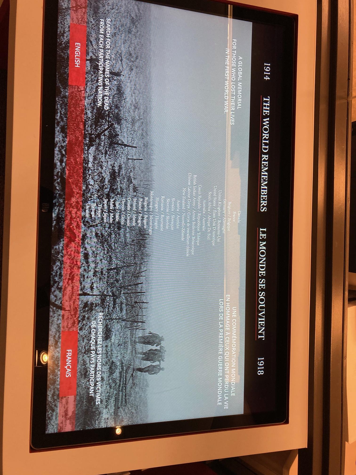The exhibition has two components – a projection kiosk in the central lobby of the Canadian War Museum displaying the names of the military personnel killed during the WWI as well as an interactive table that allows easy access to photo and text material along with search tools for finding lost relative soldiers or officers by their descendants. According to the Research Center of the Canadian War Museum, the same exhibition has been installed in Washington D.C. (USA) as well as at the memorial in Vimy Ridge (France), where Canada suffered the most casualties during the WWI.