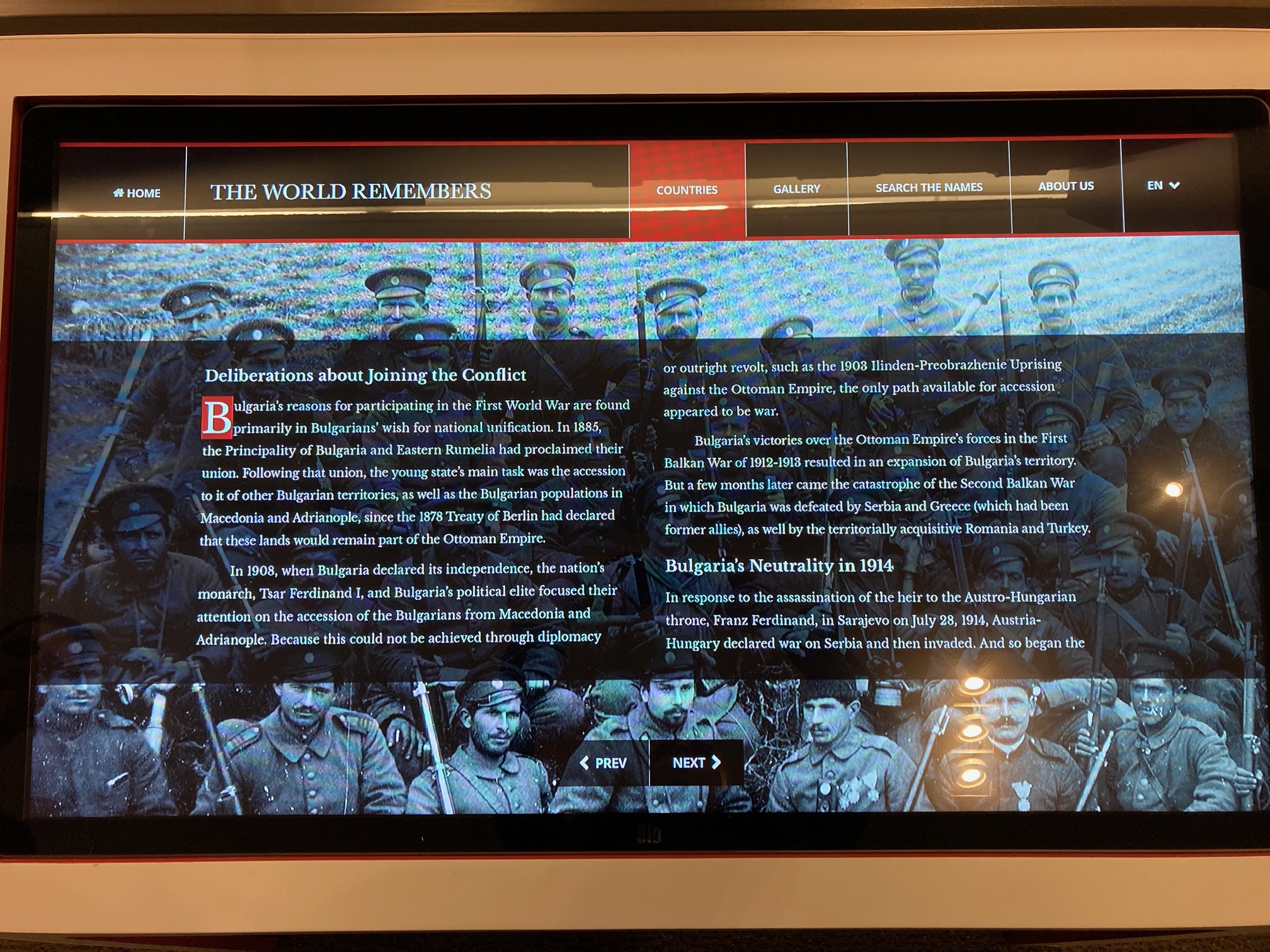 This was acknowledged by Mr. Robert Thomson, President of the Canadian non-governmental organization "The World Remembers", which initiated the project in direct collaboration with the Canadian authorities. Now the data on the Bulgarian participation in the WWI has been successfully integrated into the exhibition along with the names of 3,095 Bulgarian officers and soldiers who have been killed in action.