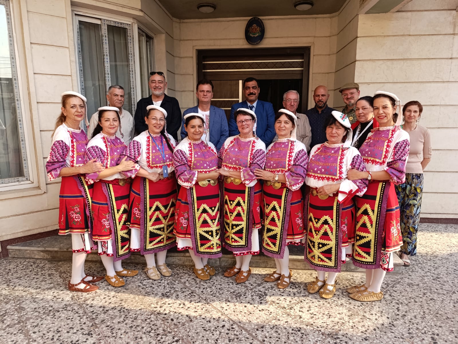 During their visit to Iraq, the ensemble was welcomed at the Embassy of the Republic of Bulgaria in Baghdad. In recognition of their excellent performance and contribution to promoting Bulgaria’s cultural heritage, the members of the group received certificates and letters of appreciation presented by the Chargé d’Affaires of the Embassy.