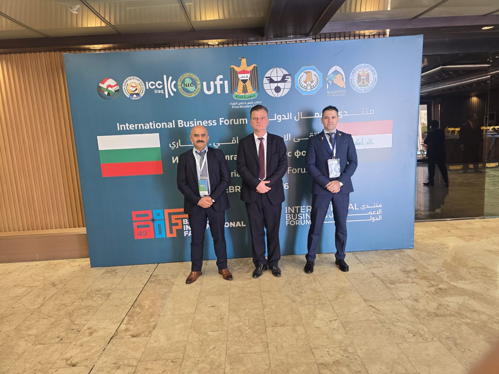 The activities of the Bulgarian National Pavilion were attended by Mr. Valentin Nikolov, Chargé d’Affaires a.i. of the Embassy of the Republic of Bulgaria in Iraq, Mr. Vasil Vasilev, Head of the Trade and Economic Affairs Office, as well as representatives of the Bulgaria–Iraq Business Council affiliated with the Bulgarian Chamber of Commerce and Industry.