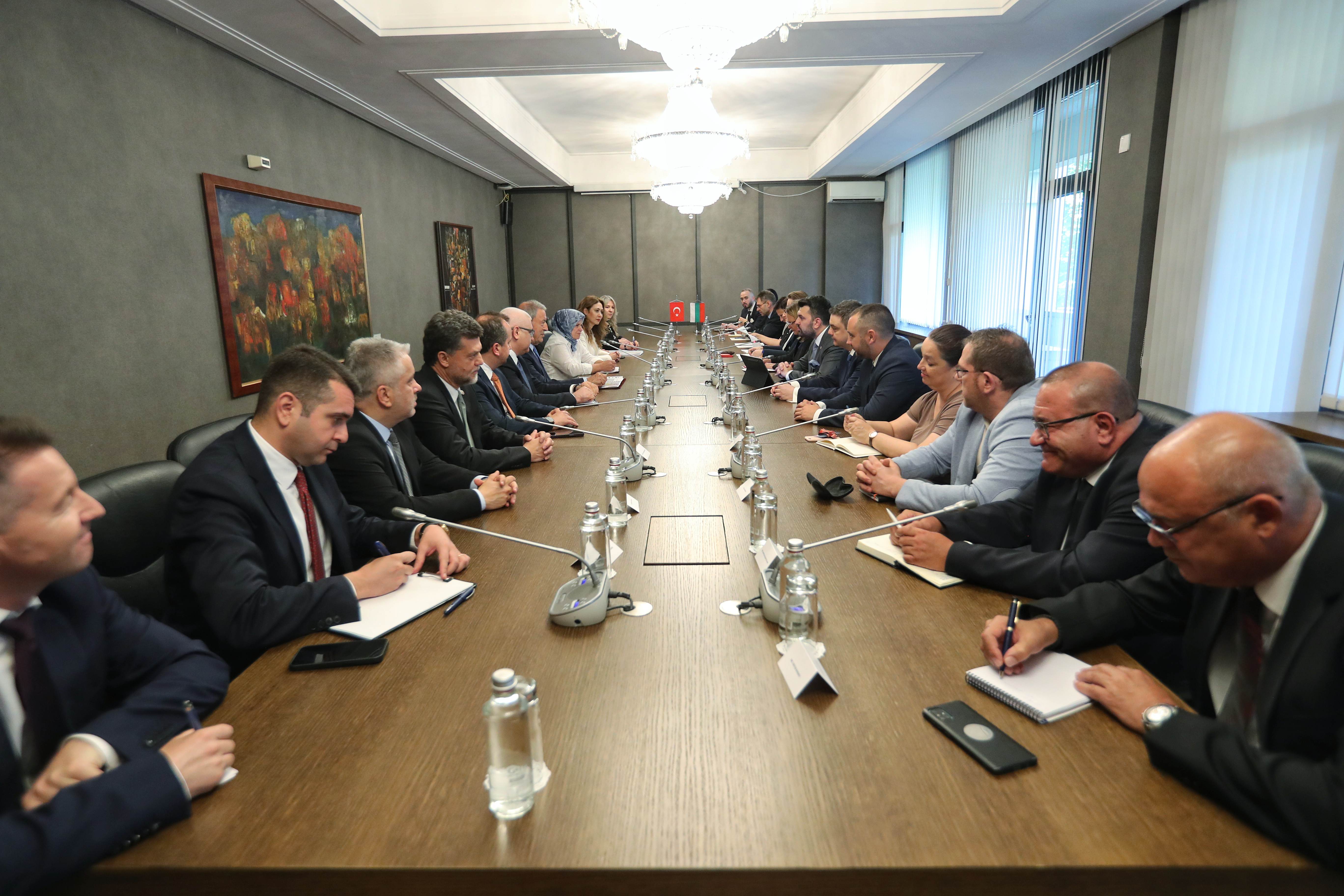 The Minister of Foreign Affairs, Georg Georgiev, received at the Ministry of Foreign Affairs a delegation from the National Defence Committee of the Grand National Assembly of Turkey, led by the Committee’s Chair, Mr Hulusi Akar. The parliamentary delegation from the Republic of Turkey is visiting Bulgaria at the invitation of the Defence Committee of the National Assembly of the Republic of Bulgaria. During the talks, a wide range of issues concerning bilateral cooperation were discussed, along with topics from the international agenda, including Russia’s ongoing war of aggression against Ukraine, the Israel-Hamas conflict, and other matters. Particular emphasis was placed on the efforts of the two neighbouring NATO allies to ensure security in the Black Sea region.