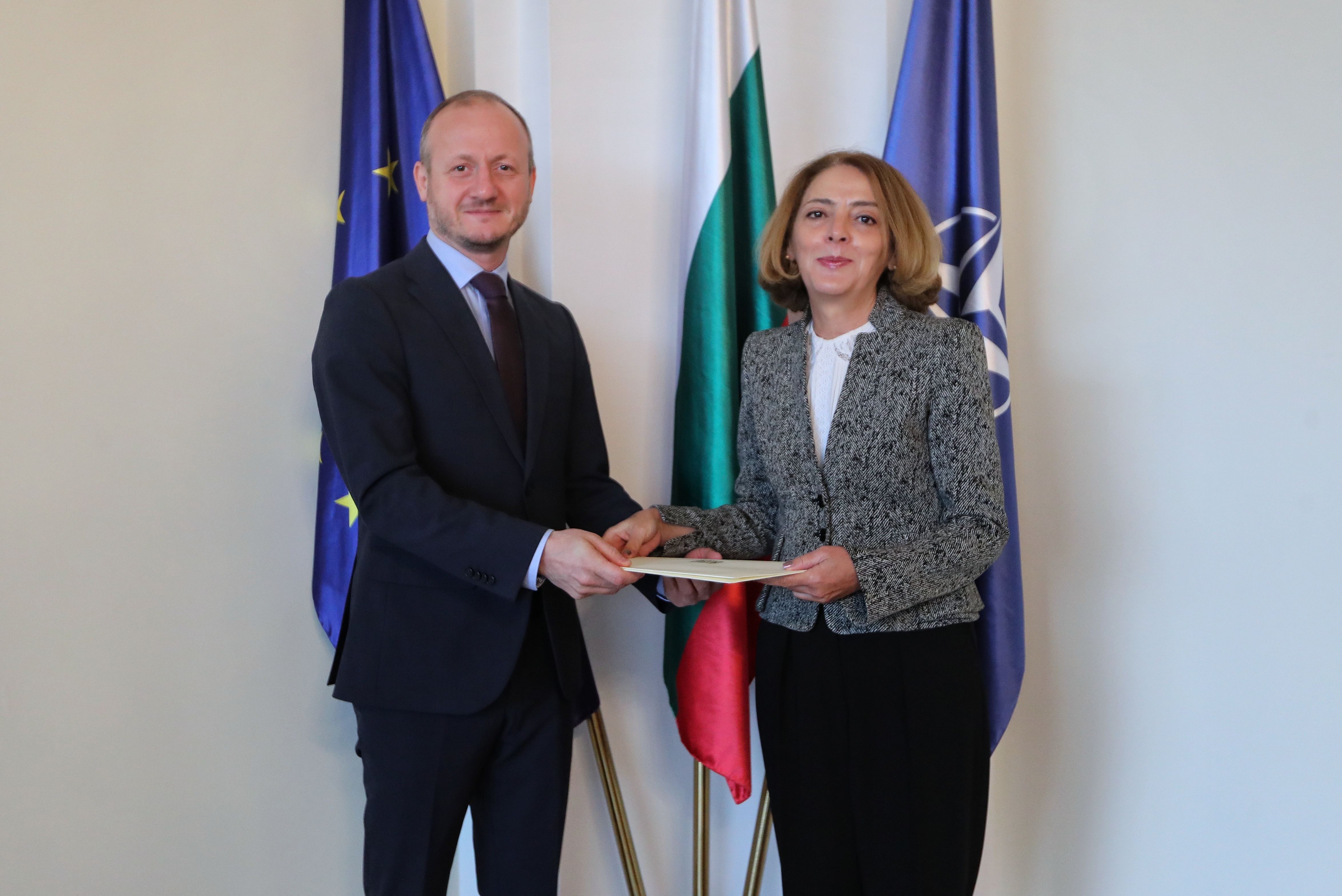 02 October 2025 NewsOn 2 October 2025, the Deputy Minister of Foreign Affairs, Ms. Elena Shekerletova, received copies of the Letters of Credence of the newly appointed Ambassador Extraordinary and Plenipotentiary of Georgia to the Republic of Bulgaria, H.E. Mr. Zurab Khamashuridze.